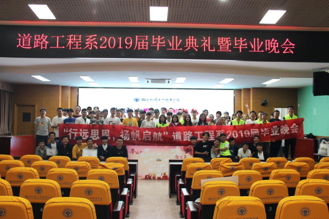 2019年5月29日,道路工程系在一号楼学术报告厅举行2019届毕业典礼毕业晚会。学生处处长王心金老师、系主任高杰老师、副主任黄颖老师、盛海洋教授以及各辅导员出席了本次晚会。