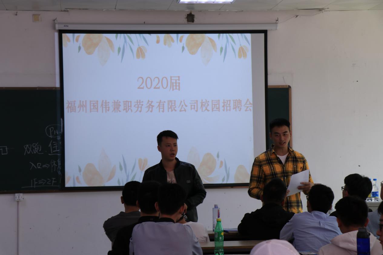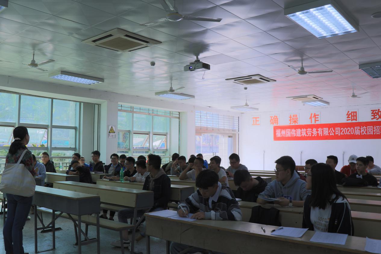 为了让我系毕业生清晰地了解市场对于人才的需求方向,同时更好的抓住就业机会,2019年11月11日,道路工程系在南区科技楼102教室举行福州国伟建筑劳务有限公司2020届校园招聘会。