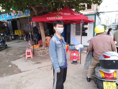 杨智贤说:量体温、登记信息都是些简单细小的事,但是万不能少,更贵在坚持。坚持志愿活动不但是为了全村人的健康安全,更是为了承担起一份社会责任,前线的医务人员正与病毒生死搏斗,我作为青年学生也只能尽此绵薄之力,在后方为防控贡献自己的力量。
