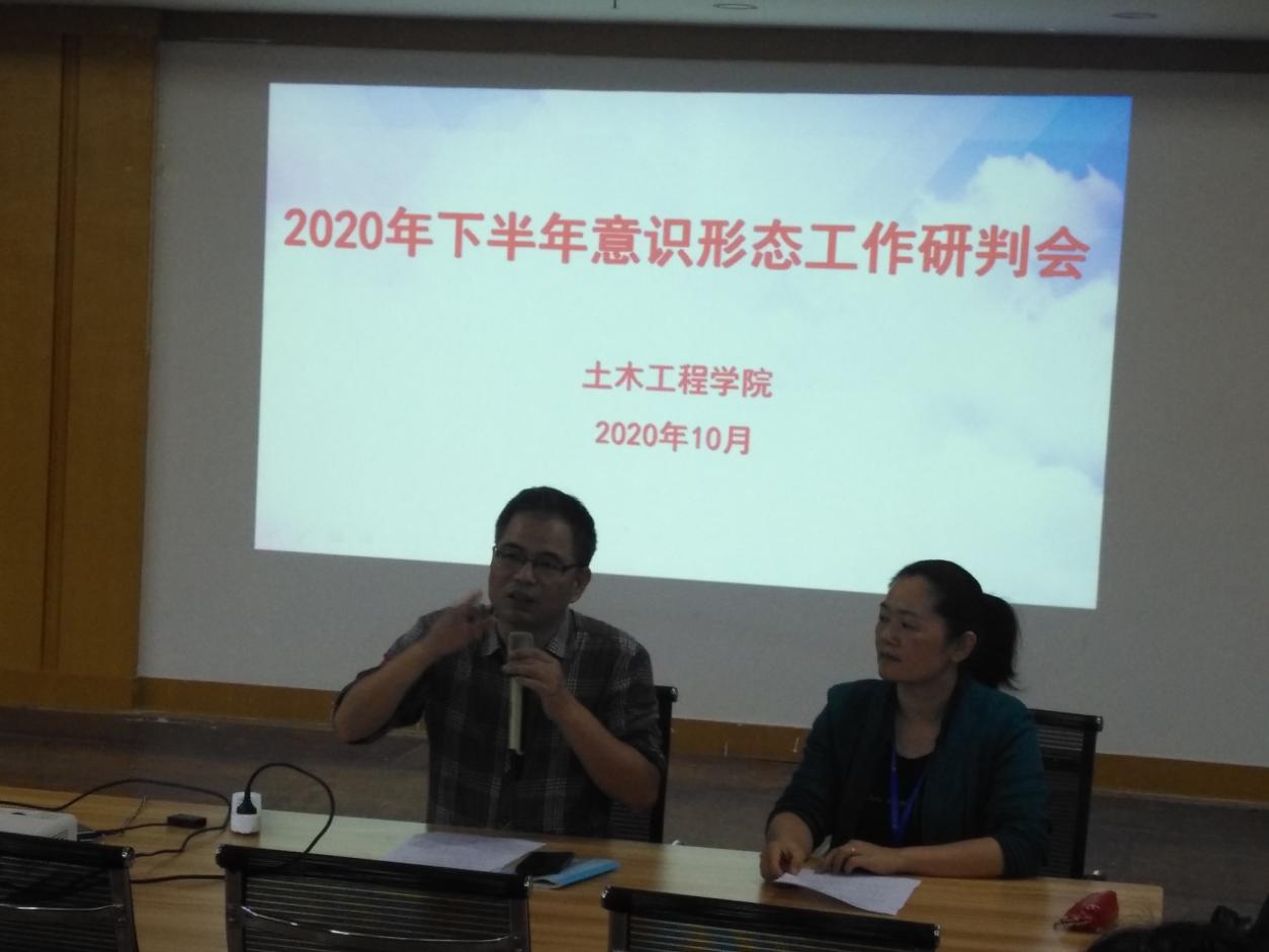 10月21日,土木工程学院在科技楼1009召开2020年下半年意识形态研判分析会,土木工程学院党总支委员、各党支部书记、委员、各教研室(办公室)负责人,全体辅导员出席。会议由土木工程学院党总支书记高杰同志主持。