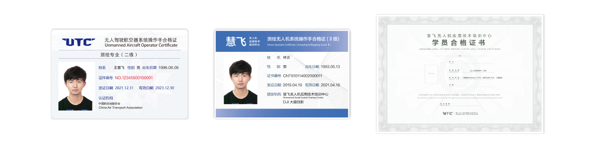 ①UTC无人驾驶航空器系统操控手合格证(测绘专业二级);