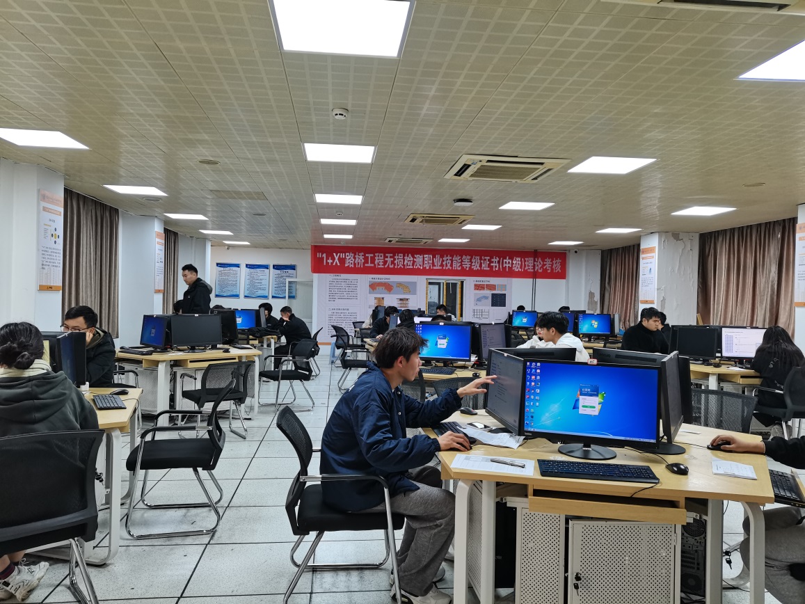 为深入贯彻教育部1+X证书制度试点工作相关精神,推进职业技能等级证书考试工作,展现我校办学特色与成效,2022年1月9日,“1+X” 路桥工程无损检测职业技能等级证书(中级)首批考试在我校顺利进行,道路与桥梁工程技术专业和建设工程监理专业23名学生参加了考试。