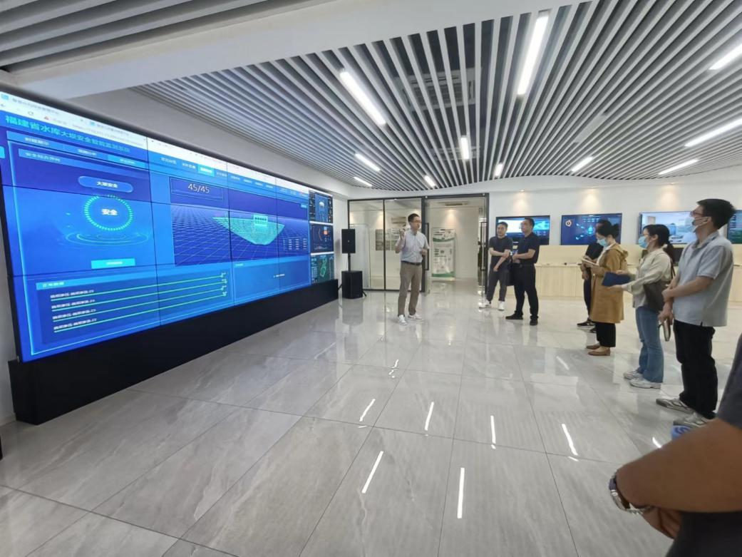 朱明栓一行首先了解了智慧水利综合管理平台、智慧工地建设管理平台、城市桥梁管养平台的建设及运行情况。同时,还参观了桥梁检测、监测虚拟仿真平台,重点了解平台与我院专业课程融合问题。