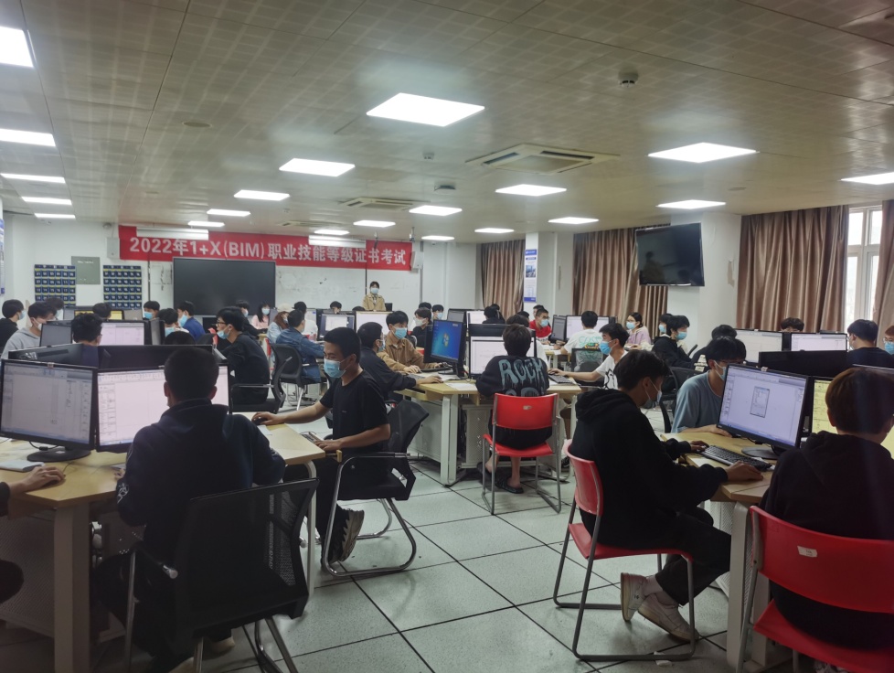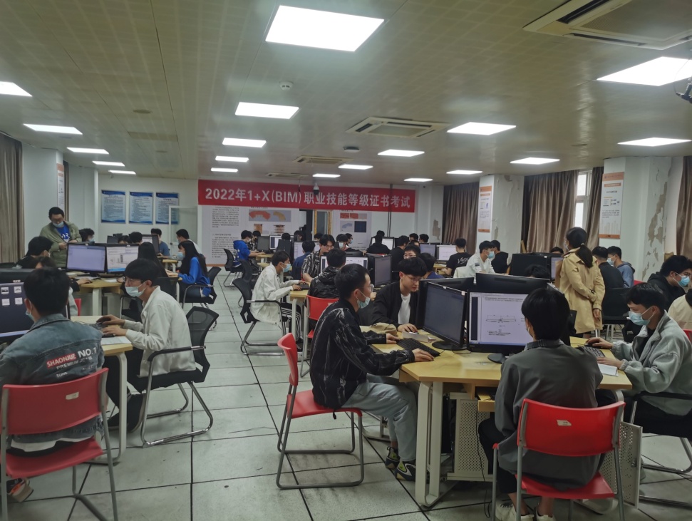 2022年5月14日,国家“1+X”建筑信息模型(BIM)职业技能等级证书考试在我校土木工程学院BIM机房科技楼601、602和609举行。本次1+X建筑信息模型(BIM)考评级别为结构中级,我院共有111
