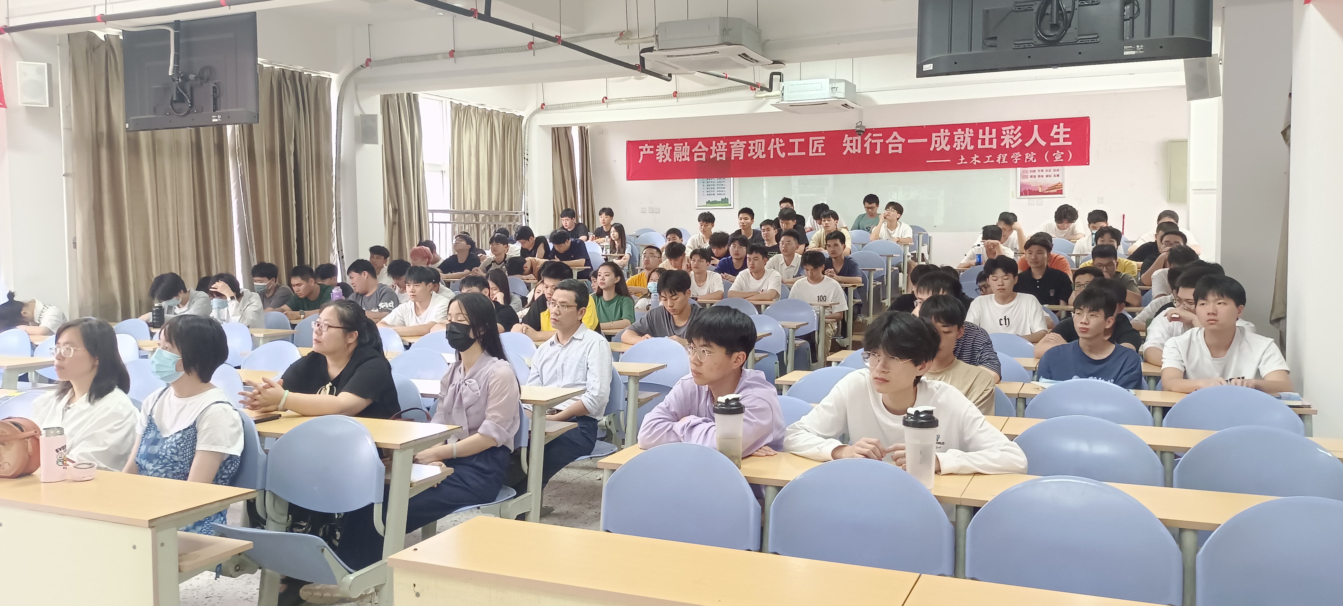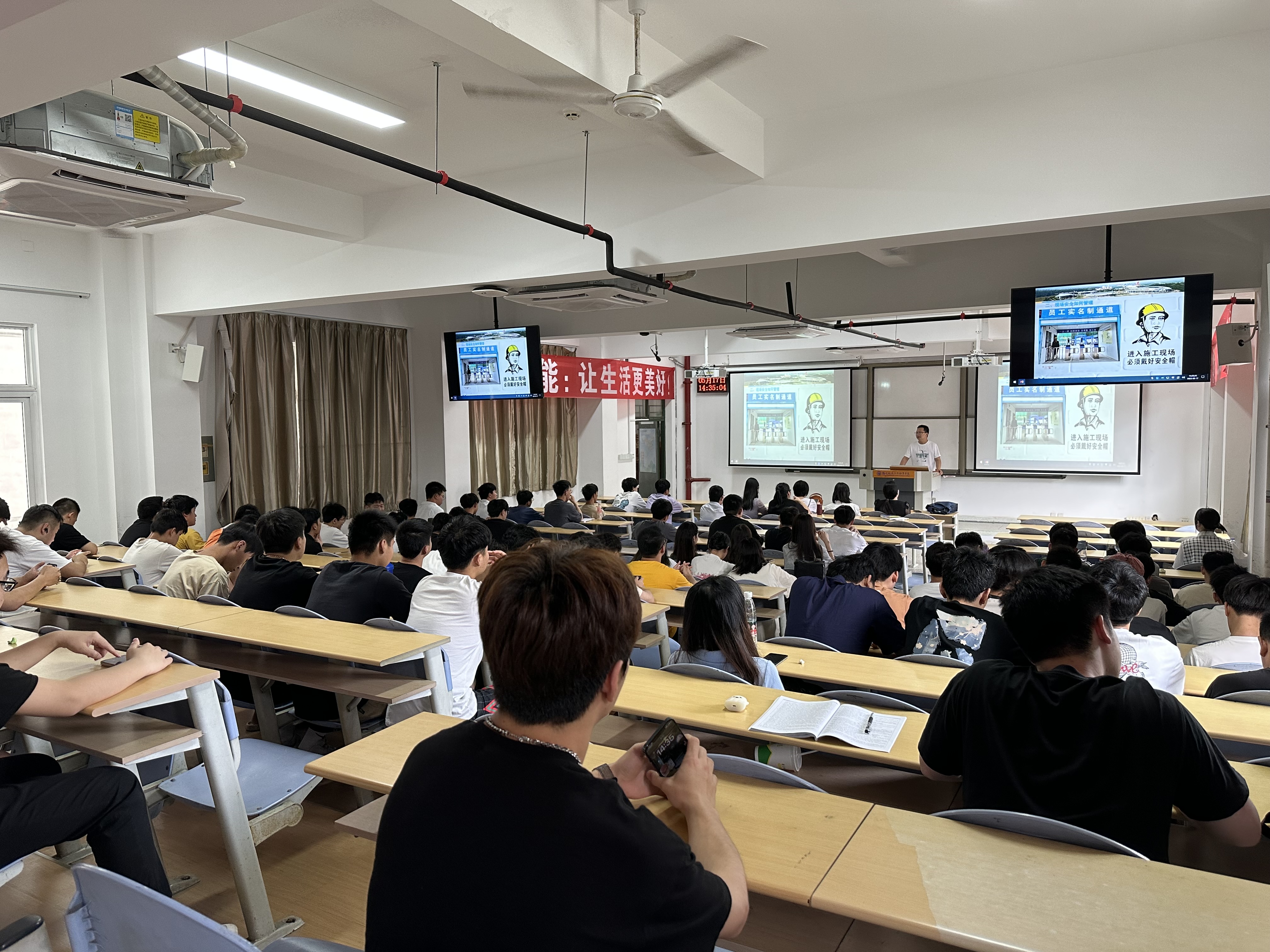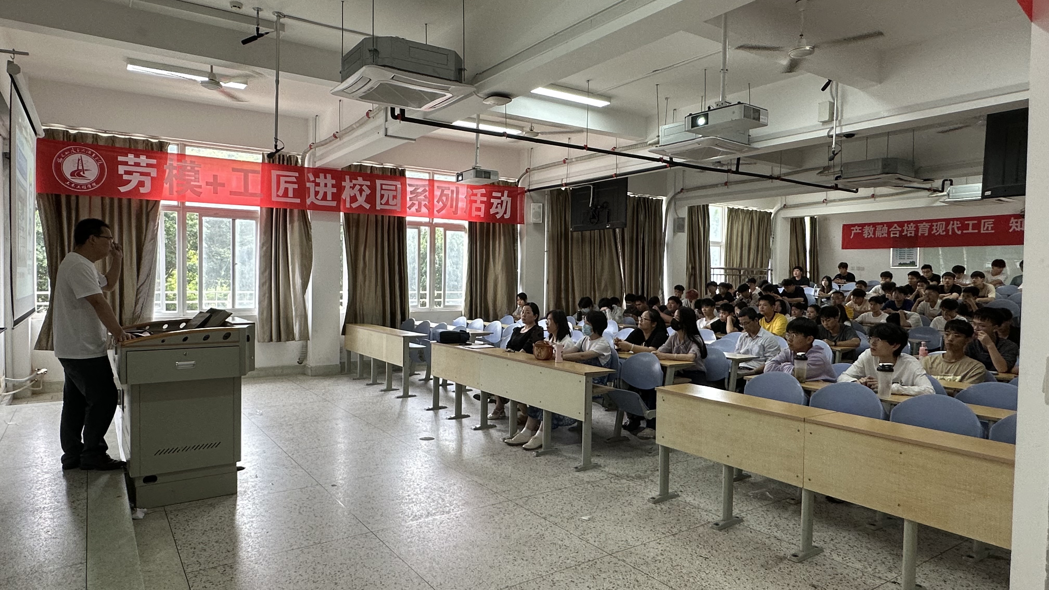为了营造“劳模+工匠”精神育人的校园新文化,进一波推进职教周活动,土木工程学院于2023年5月17日,邀请我校优秀毕业生谢仁波开展《应届毕业生如何快速融入建筑工地生活》主题讲座。谢仁波曾获得“三明青年五四奖章”、“三明市青年岗位能手”、“优秀信息员”;连续多年被福建一建集团有限公司评为各类先进,牵头带领的QC小组课题共取得了4次获得全国优异成绩,其中2次获得全国一等奖,多次省市级一等奖优异成绩。土木工程学院20级市政技术专业全体学生以及市政教研室老师聆听了本次讲座。