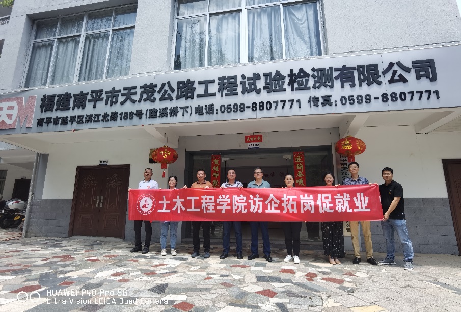 5月19日,土木工程学院党总支书记高杰一行人赴福建南平天茂公路工程试验检测有限公司访企拓岗。