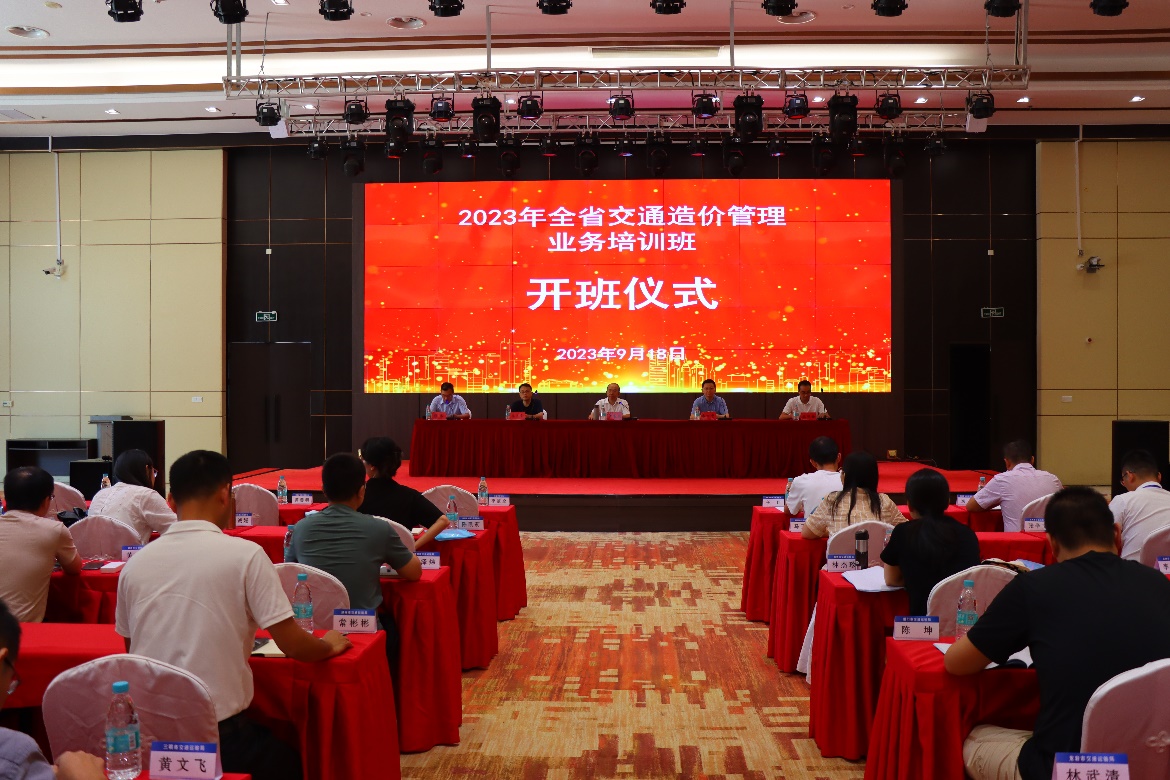 9月18日,2023年全省交通造价管理业务培训班在学院武夷新区职教园开班,福建省交通造价站站长黄善明、省交通运输厅审计处四级调研员李道全、广东省交通运输工程造价事务中心总工易万中、福建船政交通职业学院土木学院副院长朱明栓及来自全省各地市交通运输局和厅直单位的技术骨干近100人参加开班仪式。开班仪式由省交通造价站副站长缪伟主持。