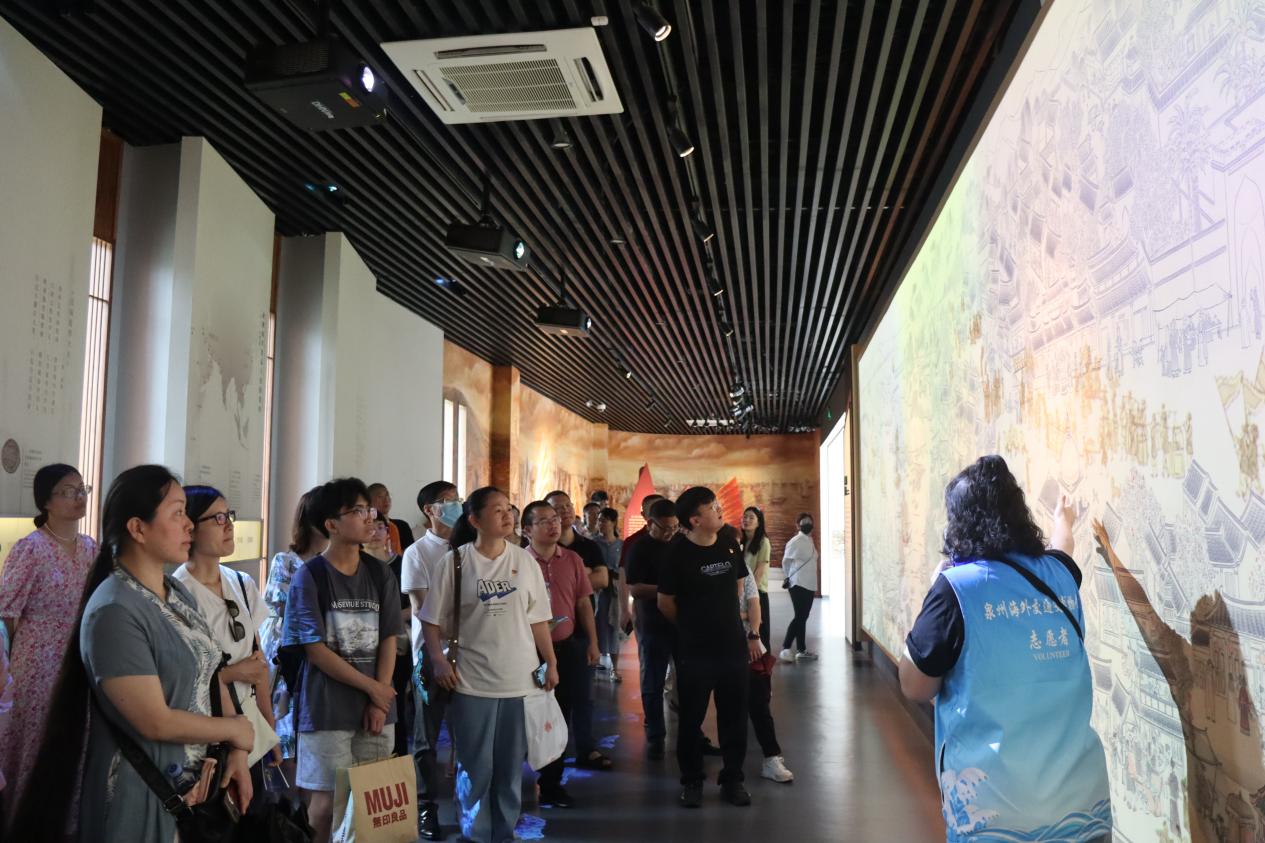 第一站来到了海外交通史博物馆,海交馆犹如一艘远航归来的海船,向来访者铺展开古刺桐百年来厚重的历史记忆。馆内陈列着不同时期的海船模型、各个年代的外销品、代表不同宗教文化的石刻等文物,全面立体地向我们展示了中国古代海洋交通、航海科技与中外经济文化交流,讲述了世界不同文明交流互鉴、互融共生的历史故事。