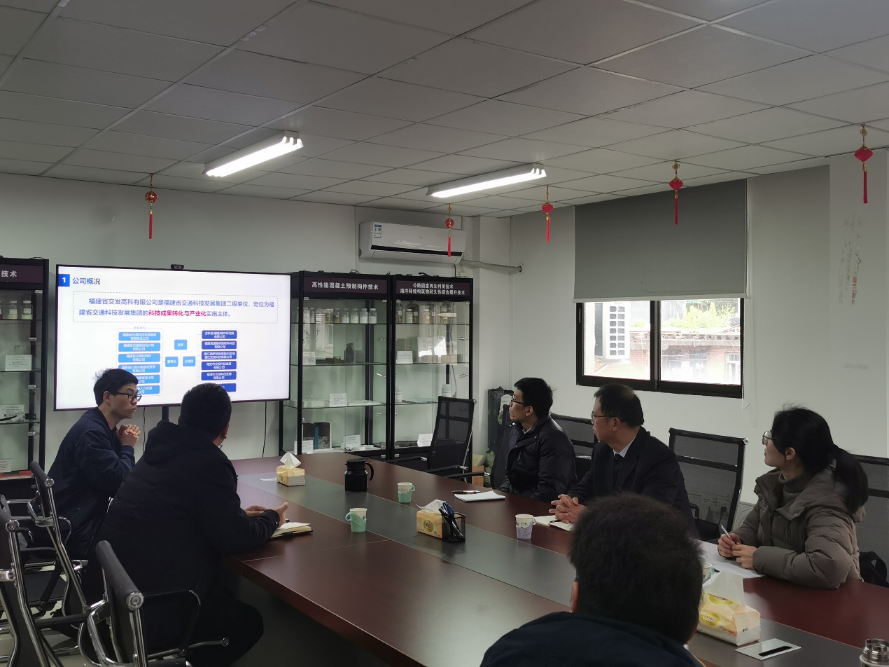 福建省交发高科有限公司副总经理左广洲对卜力平一行的来访调研表示热烈欢迎。在座谈环节,技术研发部部长刘林石水介绍了公司基本情况,发展历程以及公司在科技创新研究应用方面的最新成果,包括隧道安全低碳建养技术、低碳环保型路面建养技术、海洋环境构筑物耐久性综合提升技术、公路固废再生利用技术和基于新材料的工业化建造技术等。卜力平教授级高级工程师介绍了土木工程学院近几年在科研创新和技术转化方面的成果,以及人才培养、社会培训、实习就业、技术服务等方面的特色和亮点。双方一致认为,将秉持互利共赢原则,通过产教融合与校企合作,加强交流沟通,充分发挥各自领域的专业技术优势,实现校企资源有机结合,形成专业产业相互促进、共同发展。