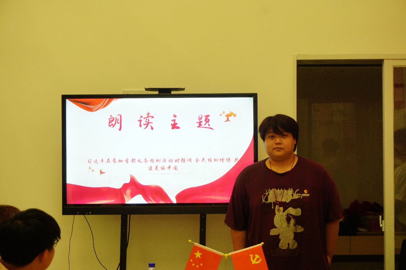 分享会上,2023级建设工程管理2班祖豪,通过朗读习近平总书记在4月2日上午在参加首都义务植树活动时的重要讲话,引导同学们学习习近平总书记的重要讲话思想,积极参与植树造林,人人争当绿色使者、生态先锋,为建设美丽中国增绿添彩,共同谱写人与自然和谐共生的中国式现代化新篇章而不懈奋斗!