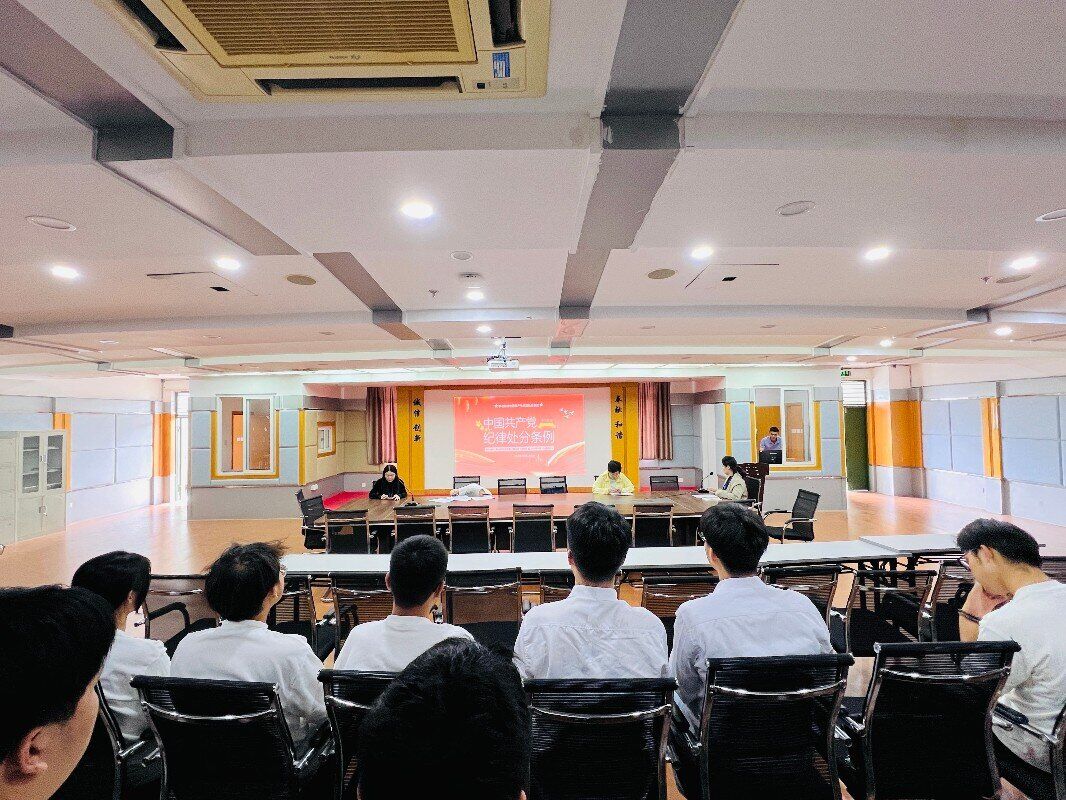 王美春同志首先带领全体党员同志学习了《中国共产党纪律处分条例》修订的历史沿革和主要内容,深入领会加强纪律建设是全面从严治党的治本之策,注重从思想上固本培元,弘扬党的光荣传统和优良作风,警示毕业班党员同志们要在未来的实际工作中严于律已,守纪律、讲规矩,把增强党性、严守纪律、砥砺作风融入日常、化为习惯。同时,勉励毕业生党员要牢记自己的使命,坚定理想信念,为人民服务,为人民负责,在人民需要你、国家需要你的时候,挺身而出;作为船政学子,也希望大家心系母校,在外始终保持船政学子良好的精神风貌,继续书写船政故事,传承红色精神,并且希望大家都能够前程似锦,未来可期。