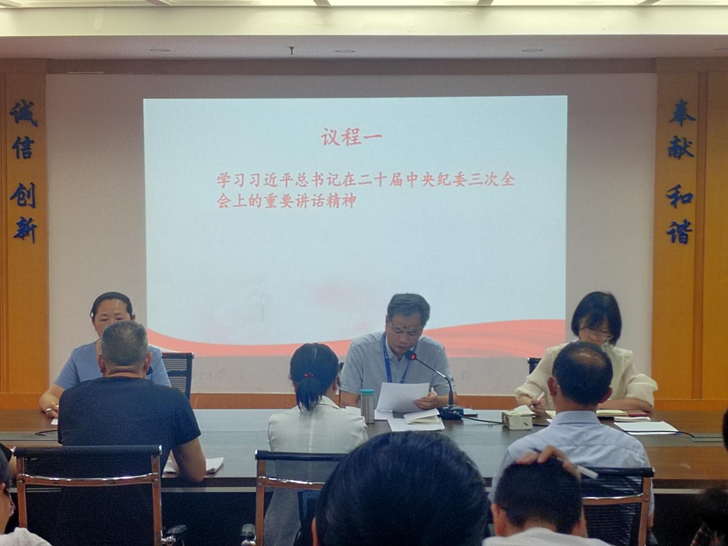 会上,集中观看了《持续发力 纵深推进》第一集《解决独有难题》,通过原应急管理部消防救援局党委委员、副局长张福生案,吉林省政协原副主席张晓霈案,辽宁省公安厅原三任厅长李文喜、薛恒、王大伟案,讲述新时代新征程我们党一刻不停推进全面从严治党,健全全面从严治党体系,把党的伟大自我革命进行到底的生动实践。通过违纪违规案例,提醒每一位党员干部要认真地履行全面从严治党主体责任,进一步增强廉洁自律意识,以案为戒筑牢理想信念根基,筑牢拒腐防变思想防线,推动党纪学习教育走深走实、见行见效。