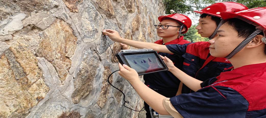 本次活动中,团队成员现场调研当地村落石砌体建筑现状,并与当地村民面对面交流对,掌握村民对石砌体建筑抗震加固的需求。同时利用专业检测设备对石厝灰缝进行无损探测,收集到灰缝缺陷情况。