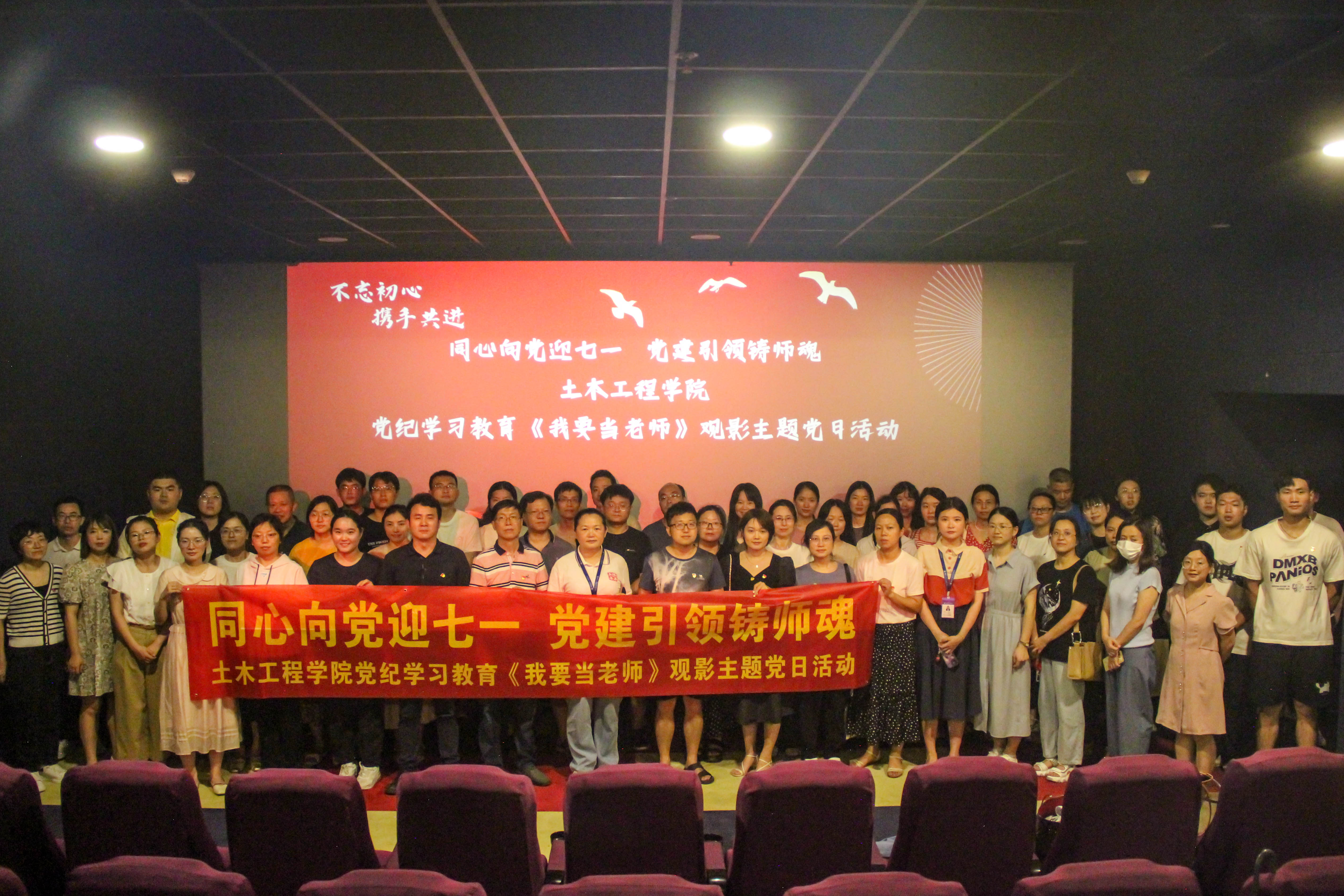 为深入学习贯彻习近平总书记对学校思政课建设重要指示精神,扎实推进思政课建设和师德师风建设,推动党纪学习教育走深走实,6月26日,土木工程学院党总支组织开展“同心向党迎七一 党建引领铸师魂”党纪学习教育《我要当老师》观影主题党日活动。全体教师党员、在校学生党员等参加活动。