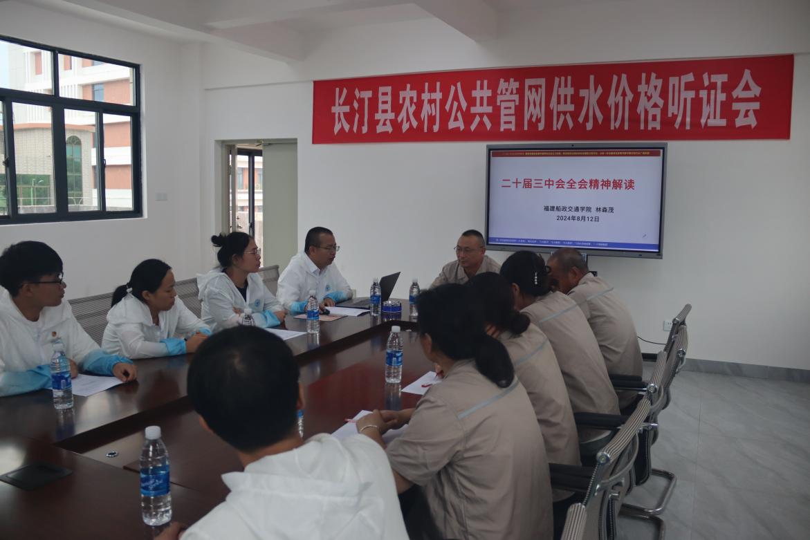在河田镇柳泉水厂座谈会上,“船政青年说·信·中国”实践团指导老师开展《党的二十届三中全会精神解读》宣讲。宣讲结束后,与会人员开展集中研讨,大家一致认为党的二十届三中全会是在以中国式现代化全面推进强国建设、民族复兴伟业的关键时期召开的一次十分重要的会议。全会审议通过的《中共中央关于进一步全面深化改革、推进中国式现代化的决定》,既是党的十八届三中全会以来全面深化改革的实践续篇,也是新征程推进中国式现代化的时代新篇。