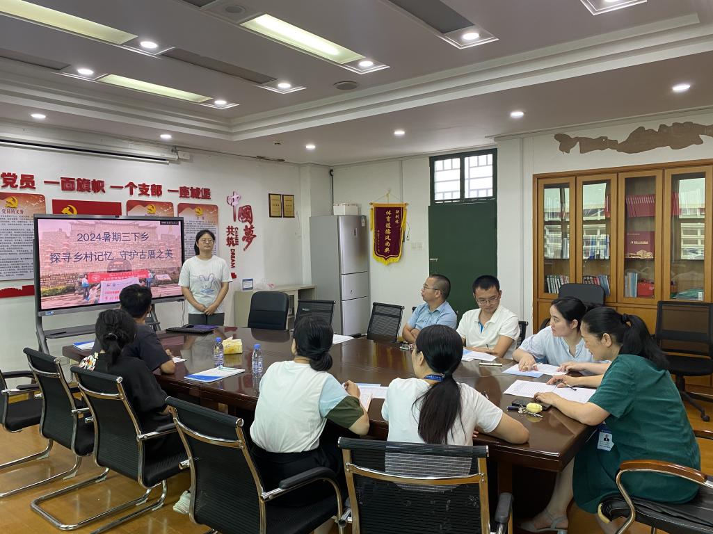 会上,各实践队伍指导老师以PPT汇报的形式,从前期策划、实践过程、实践成效、实践总结等方面介绍了各自队伍暑期“三下乡”社会实践活动开展情况。
