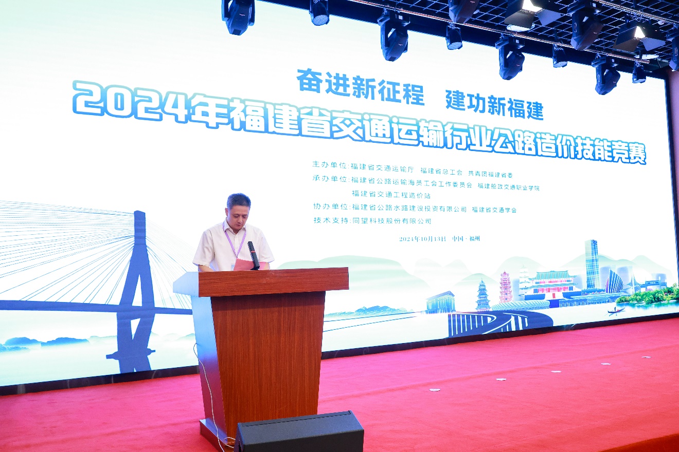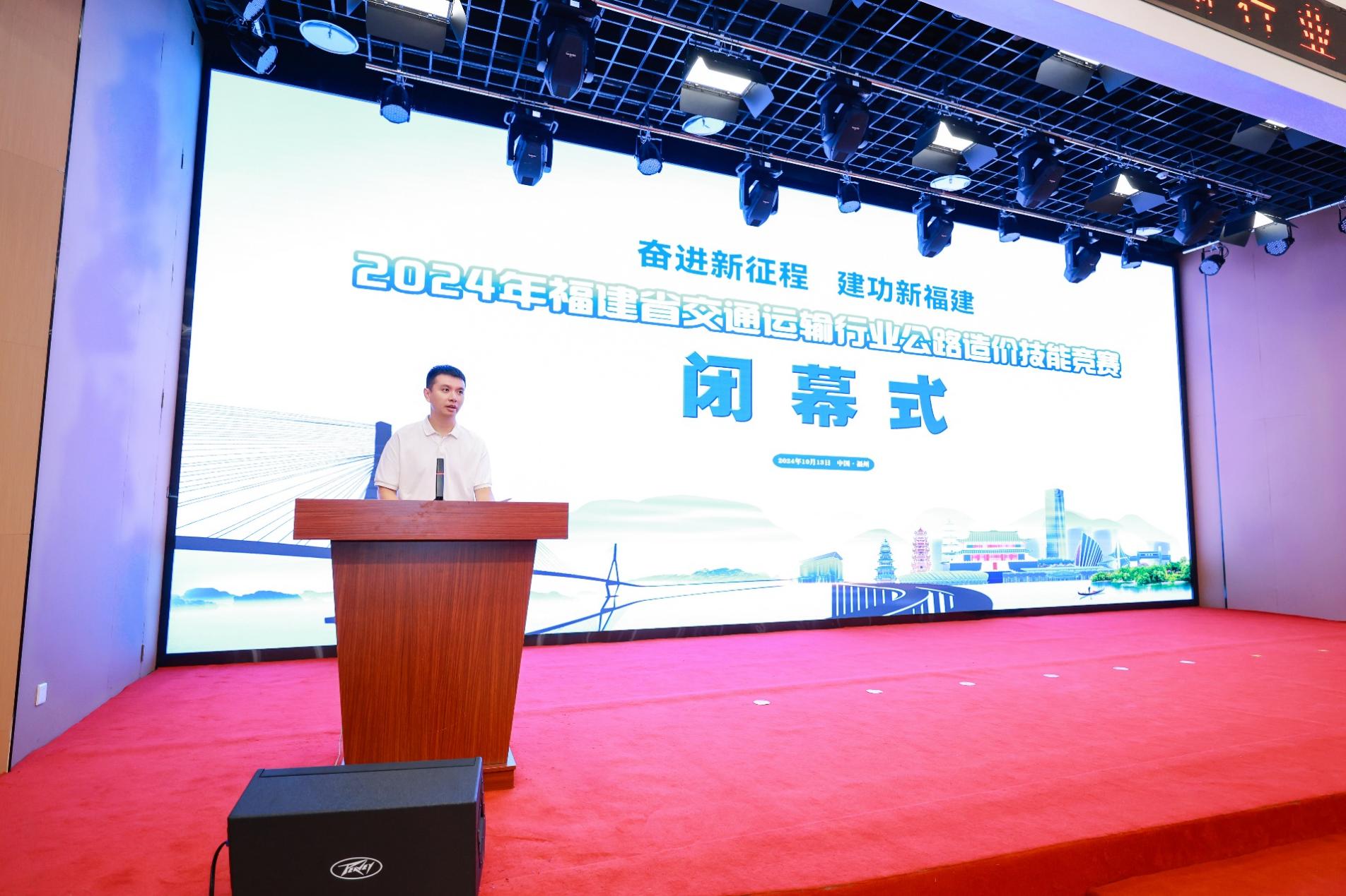 福建省交通运输厅产业工会副主席陈哲明发表总结讲话,对获奖选手表示祝贺,他强调,本次公路造价技能竞赛,是全国交通行业率先由省直部门联合举办的省级造价技能竞赛,一方面坚持应用导向,真实还原学习或工作场景,发挥以赛促学、以赛促用的指挥棒作用,另一方面坚持拓展创新,通过竞赛+培训和竞赛+展示的方式,搭建了有益的交流提升平台,促进学、练、赛一体,深化产、学、研融合,促进我省交通造价技能人才的加速培养。