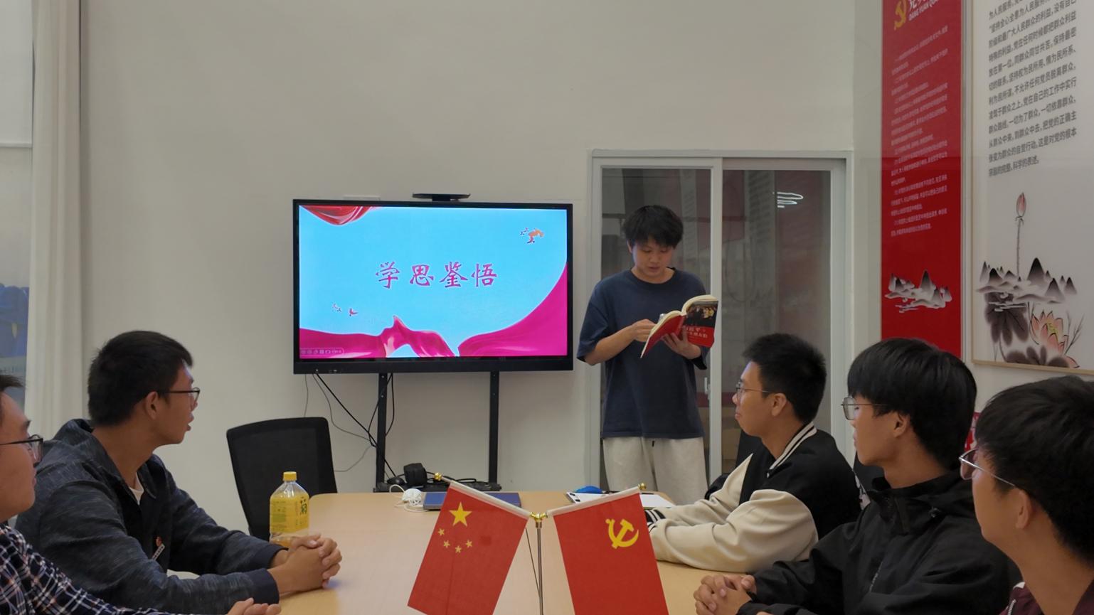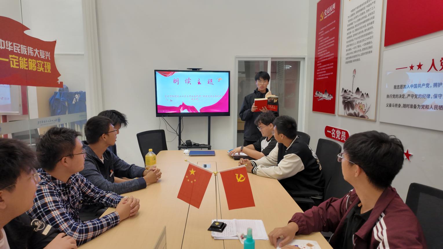 分享会上,2024级建筑工程技术2班班长武佳静,领学朗读了《中共中央关于进一步全面深化改革、推进中国式现代化的决定》(后文简称《决定》)“构建支持全面创新体制机制”部分。