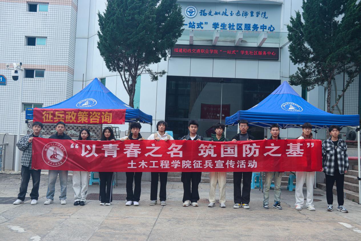 为增强同学们的国防意识,激发爱国情怀,鼓励有志青年参军入伍,响应国家号召,积极投身到国防建设中。2024年12月10日,土木工程学院于福航园“一站式”学生社区举办“以青春之名,筑国防之基”征兵宣传活动。