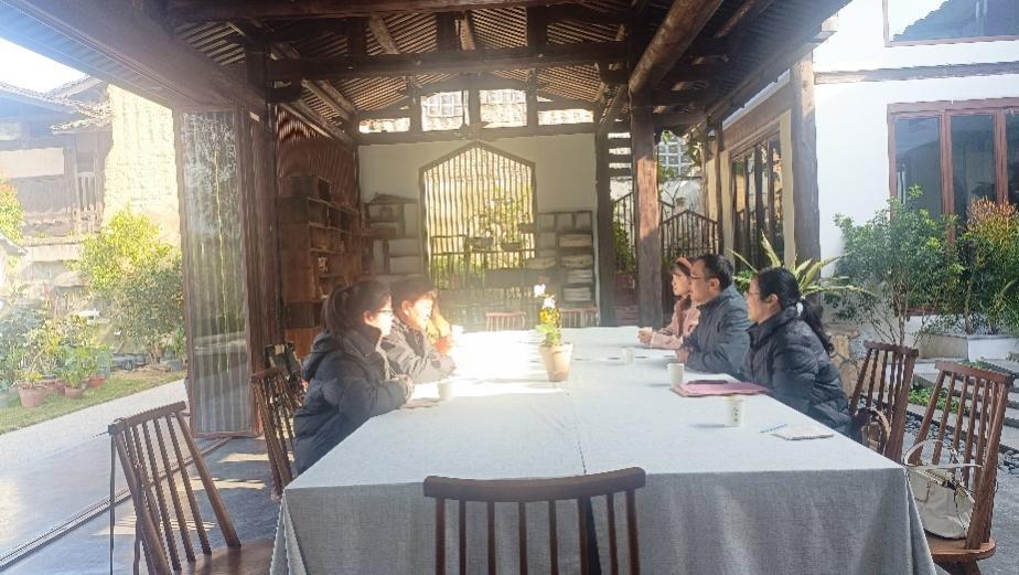 首先侯秀华主席对学校一行的到来表示欢迎,并对嵩口镇近年来的变化尤其是乡村振兴方面的成效等做简要的介绍。设计师谢方玲向大家介绍了近期在建的乡建项目及将开展的活动,并邀请校方师生参与活动。