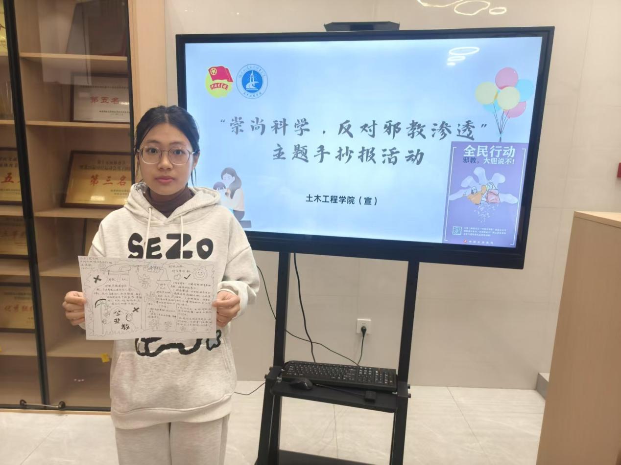 为弘扬科学精神,普及反邪教知识,提升全民识邪、拒邪、防邪意识,营造崇尚科学、反对邪教的良好校园氛围。2024年12月18日,土木工程学院于福航园“一站式”学生社区开展“崇尚科学,反对邪教渗透”主题手抄报活动。
