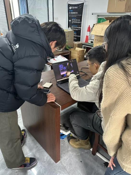 在企业导师陈平的指导下,专业学生们熟练操作无人机进行高光谱水质监测飞行,实施搭载高光谱传感器的水体数据采集。随后现场进行高光谱数据的处理与分析,充分将测绘新技术应用于水保行业。