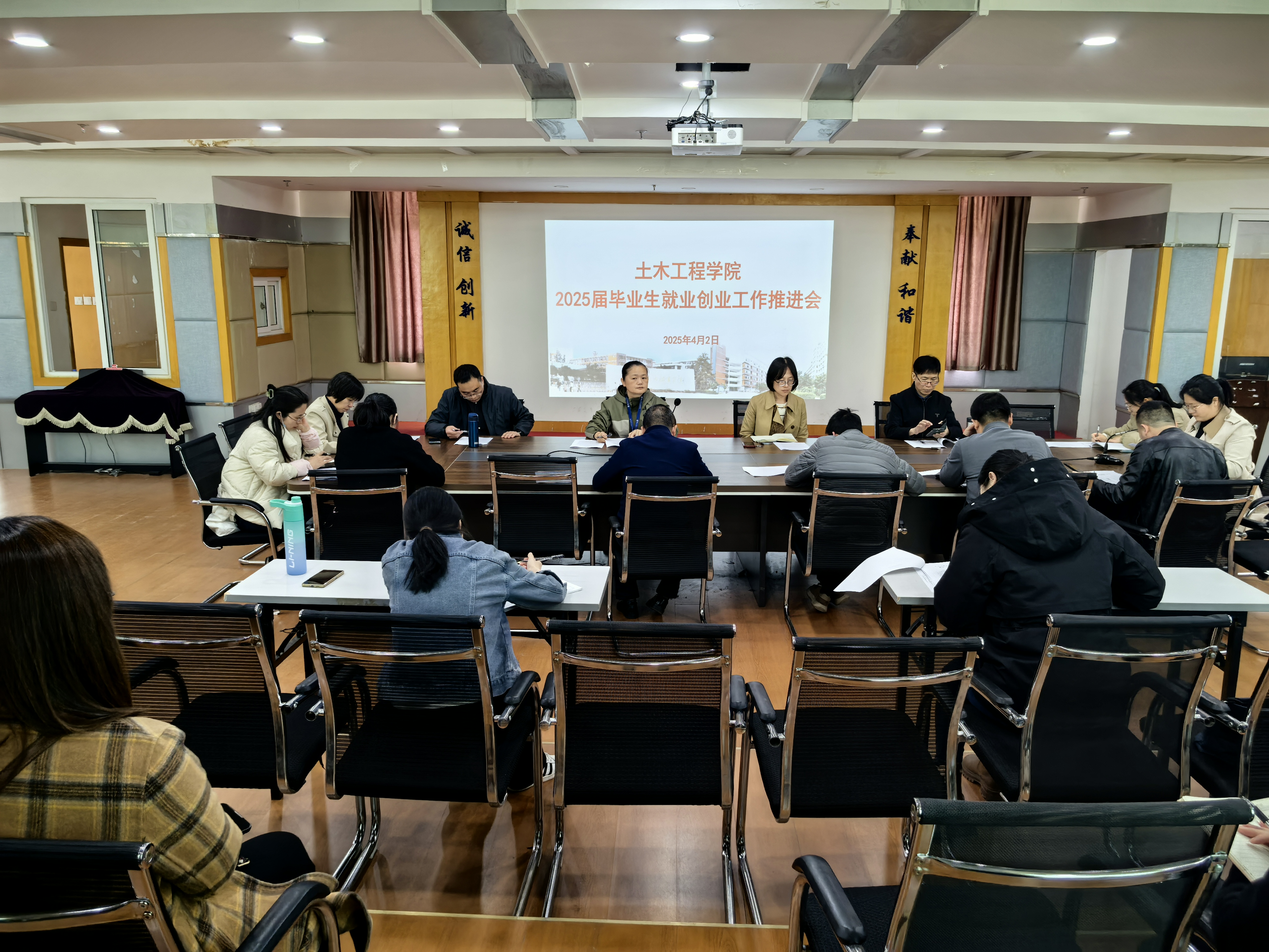 为深入贯彻落实2025届高校毕业生就业创业工作的最新政策要求,进一步推动毕业生高质量充分就业。2025年4月2日,土木工程学院于创新楼1007会议室召开2025届毕业生就业创业工作推进会。学院领导班子、各教研室主任、班主任、毕业班辅导员及顶岗实习指导老师参加会议,会议由党总支副书记任颖卿主持。