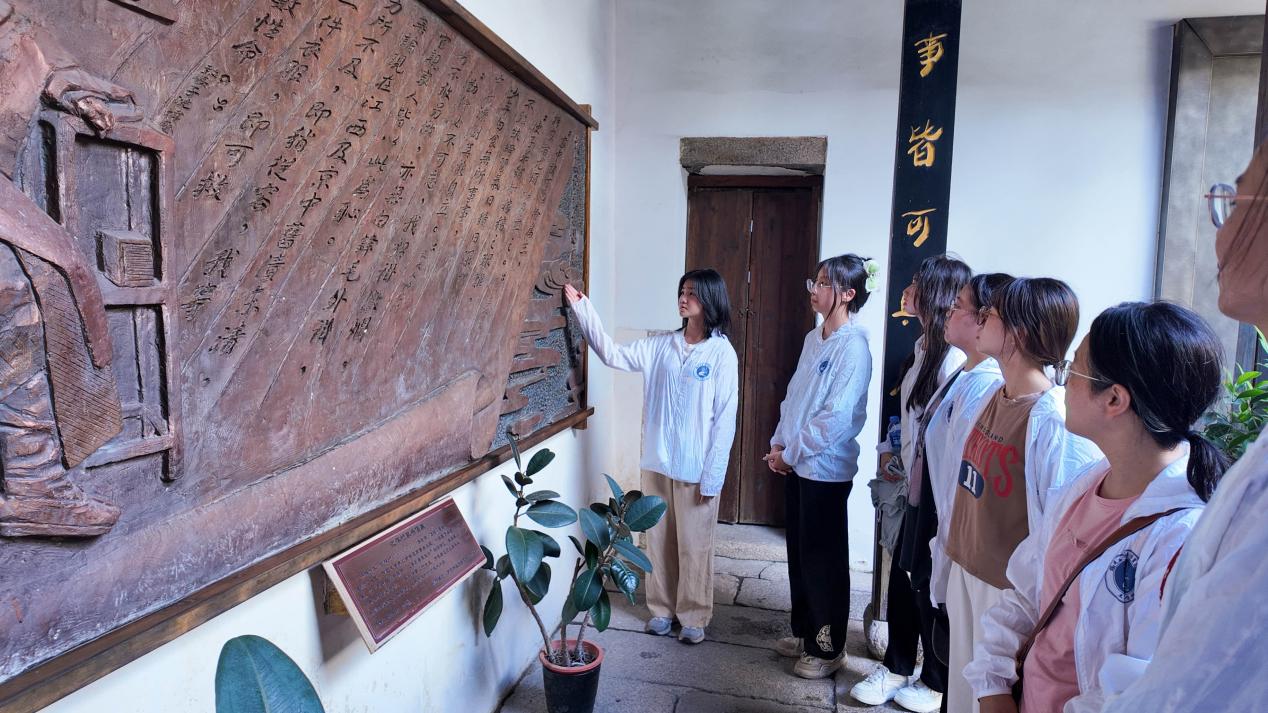 青砖灰瓦映岁月,雕梁画栋藏温情。实践队首站来到冰心故居,一座古朴院落静静矗立,天井中阳光洒落,时光仿佛在此定格。故居内,陈列着冰心生前的手稿、照片、生活用品,每一件物品都诉说着她不平凡的一生;泛黄书页上的娟秀字迹,记录着她对生活的感悟、对文学的热爱;老照片中,她或执笔沉思,或微笑凝望,尽显文人风骨。漫步在故居的各个角落,仿佛能看见年少的冰心在这里读书、写作,聆听长辈们讲述古老的故事,这里的一草一木、一砖一瓦,都浸润着她的成长记忆。透过这些珍贵的展品和场景还原,我们深刻感受到冰心先生“有了爱就有了一切” 的博爱精神以及她用文字传递温暖与希望的文学力量。