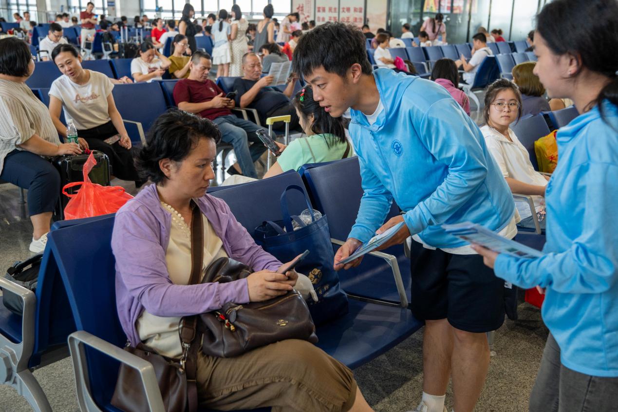 图4:宣讲团在长汀南汽车站为乘客讲解禁毒反诈知识