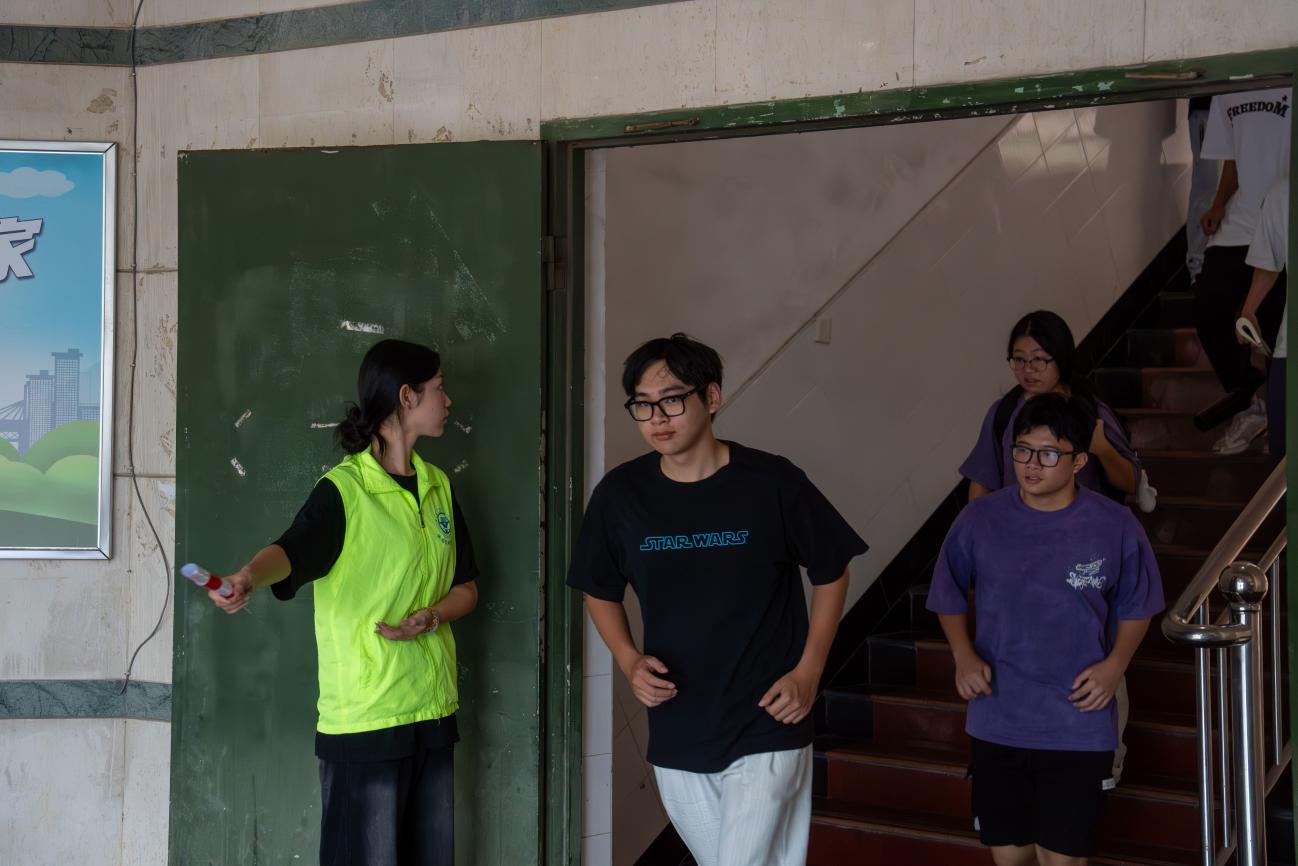 随着警报声响起,活动第二部分实战演练拉开序幕,同学们配合引导人员按照预设路线有序从消防通道撤离到创新楼外安全地点,演练整体过程有条不紊。随后,工作人员向大家演示了消防器材的正确用法,同学们积极参与其中,通过实践掌握灭火器的基本用法,将安全意识内化为本能反应,构建“消防始于行,安全植于心”的校园安全氛围。