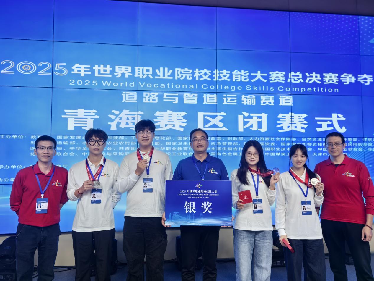 近日,2025 世界职业院校技能大赛总决赛道路与管道运输赛道(高职组)在青海职业技术大学圆满落幕。我院土木工程学院道路与桥梁工程技术专业学子表现亮眼,由方玉婷、卢思成、张立梅、何鑫乐组成的参赛团队,在指导教师池传树、梁巍的悉心指导下,从全国 27 个省(市、自治区)的 87 支代表队中脱颖而出,成功斩获银奖,展现了我院学子扎实的专业技能与良好的综合素养。