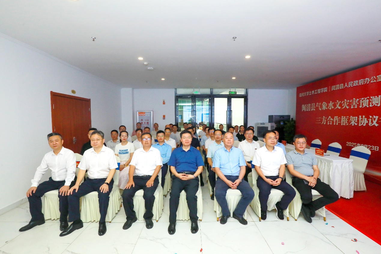 2025年9月23日,“福州大学闽台海洋工程可持续发展协同创新研究中心”成立揭牌仪式在福州大学国家科技园(侯官园区)举行。福州大学副校长张亚雷、福建船政交通职业学院副校长陈常晖、中国电建集团华东勘测设计研究院副院长郭忠、福建永强岩土股份有限公司董事长许万强、华润电力福建公司技术总监王志军,以及来自政府部门、高校、企业的众多嘉宾齐聚一堂,共同见证这一推动闽台海洋工程领域发展与校校、校地、校企深度合作的重要时刻。