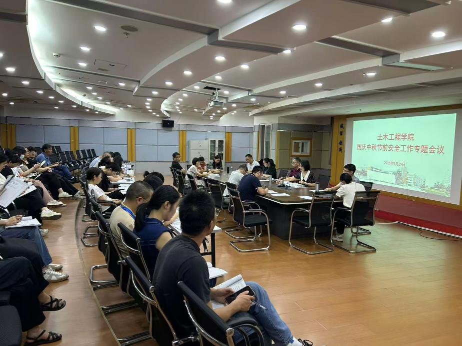 为加强学院安全管理,保障国庆中秋双节期间校园安全稳定,土木工程学院于2025年9月29日召开第三季度安全工作会议。会议由学院相关负责人主持,学院领导班子成员、各教研室主任、办公室人员、实训中心成员及全体辅导员参加会议。