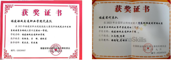 图4 2023福建省职业技能大赛高职组风光互补发电系统安装与调试团体一等奖及2023年全国职业院校高职组建筑智能化系统安装与调试三等奖
