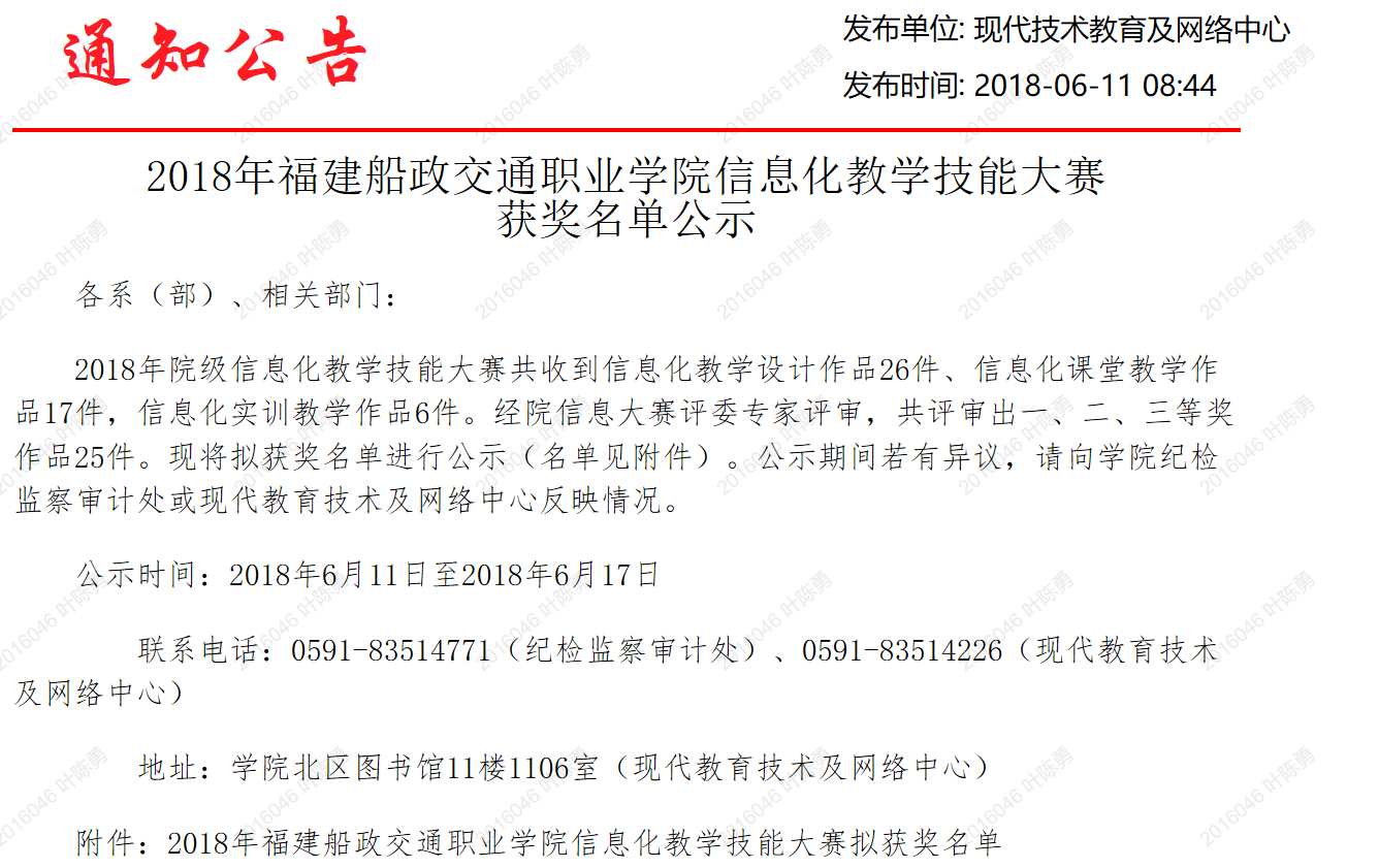 (九)2017-2020年连续被福建船政交通职业学院评为校教学能力比赛一等奖、二等奖。