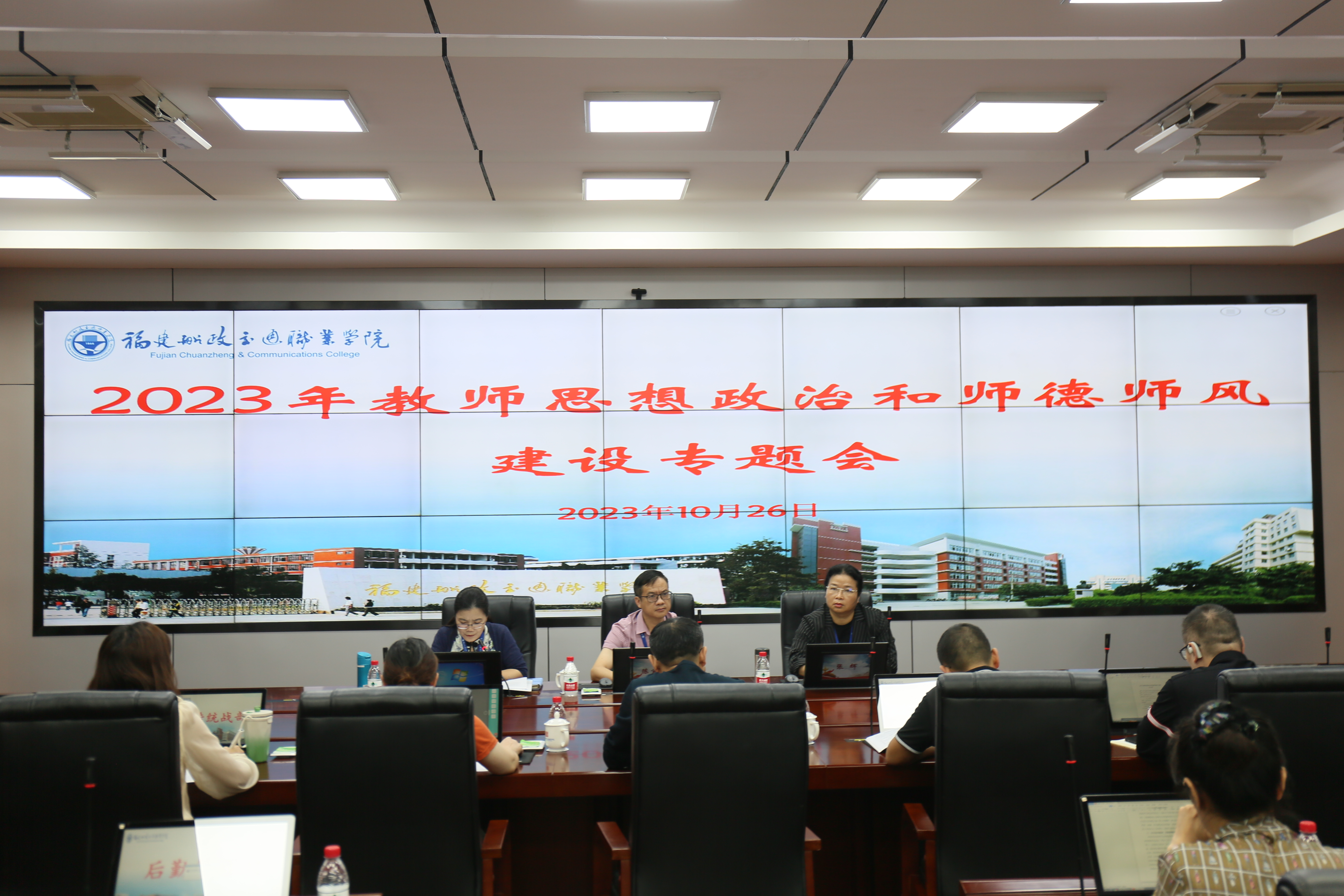 为不断提高全体教师的思想政治素质和职业道德修养,近日,我院召开了2023年教师思想政治和师德师风建设专题会。学院党委书记陈宜大,党委委员、纪委书记张辉,党委委员、副院长陈艳红出席会议,各部门负责人,二级学院党政负责人参加此次会议。会议由陈艳红同志主持。