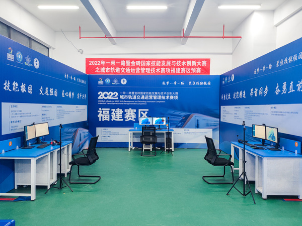 2022年12月8日~9日,2022一带一路暨金砖国家技能发展与技术创新大赛之城市轨道交通运营管理技术赛项福建赛区总决赛在福建船政交通职业学院成功举办。福建船政交通职业学院党委委员、副校长张祖柱,郑州捷安高科股份有限公司副总经理周松,福州地铁集团有限公司副经理任延会,福建省职业教育中心校企合作部副主任毛行静,福建船政交通职业学院教务处处长陈朝慰,福建船政交通职业学院轨道交通学院党总支书记孙基,福建船政交通职业学院轨道交通学院副院长陈宏意及各参赛院校代表通过线上线下的方式参加开幕式,轨道交通学院院长陈天炎主持开幕式。