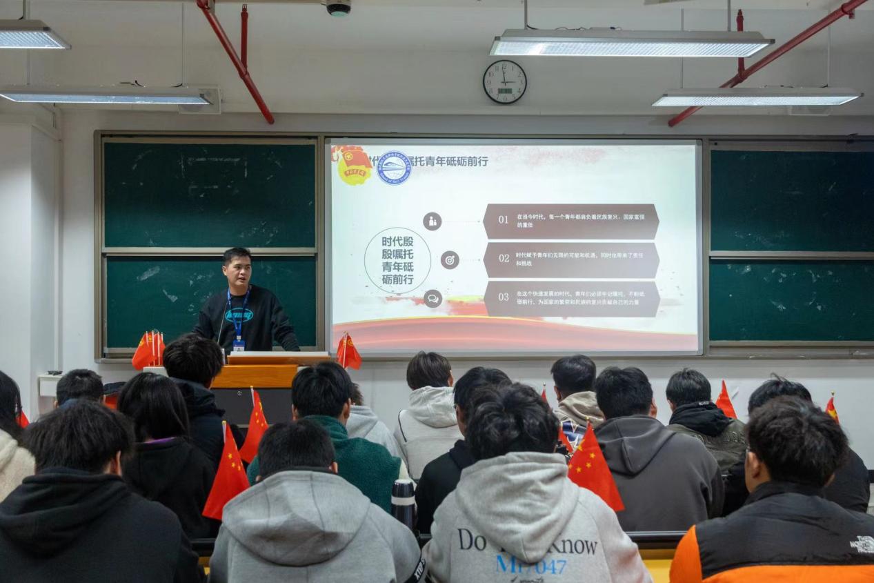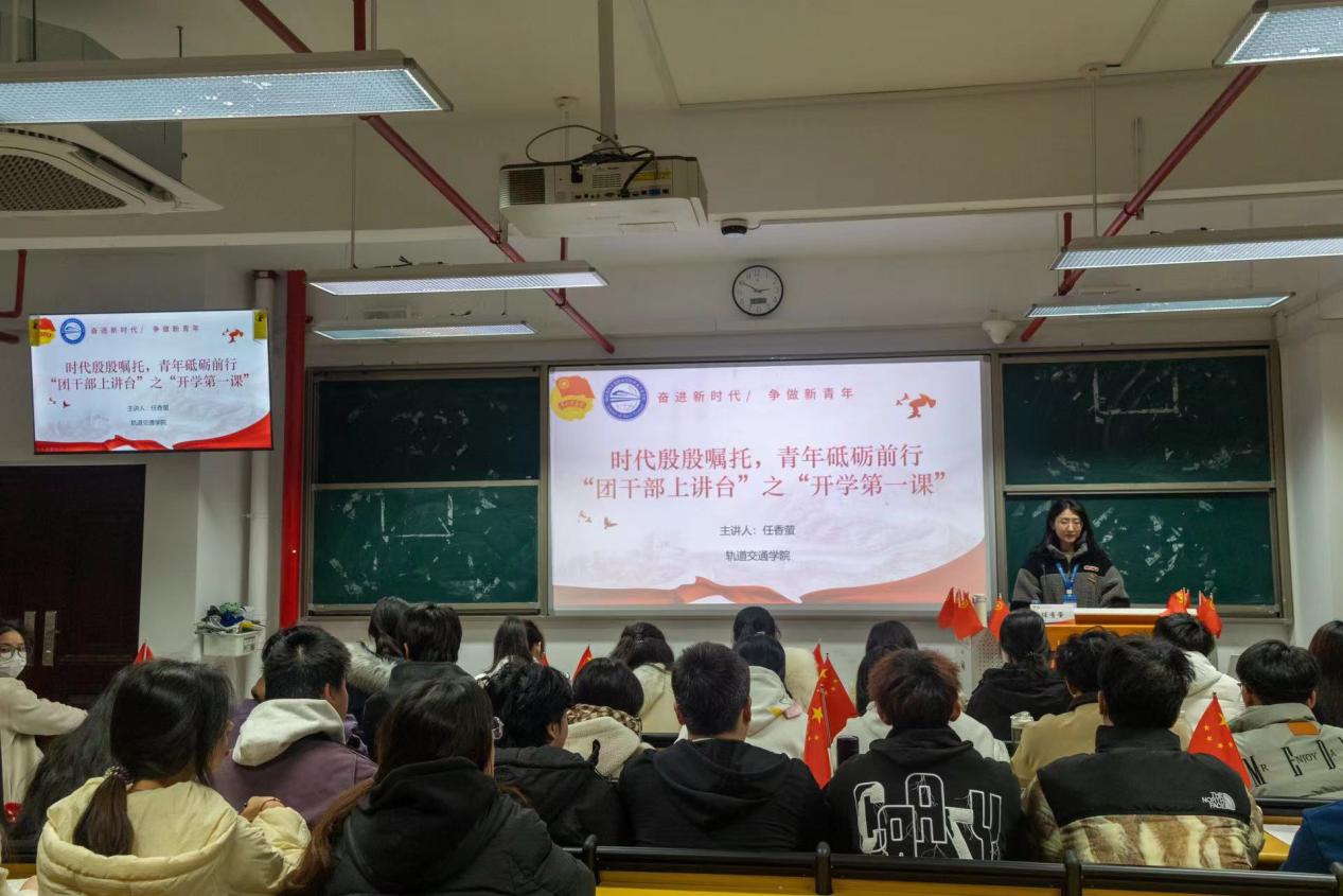 为学习贯彻习近平新时代中国特色社会主义思想,重视青年、培养青年、爱护青年、瞩望青年,始终贯穿习近平总书记的“青年观”,轨道交通学院于2023年12月开展“团干部上讲台”之“开学第一课”活动,本次活动以“时代殷殷嘱托,青年砥砺前行”为题,由轨道交通学院分团委书记林欣欣、分团委副书记郑华辉、分团委组织委员张毅、分团委宣传委员任香萤分别为我院全体新生上团课。