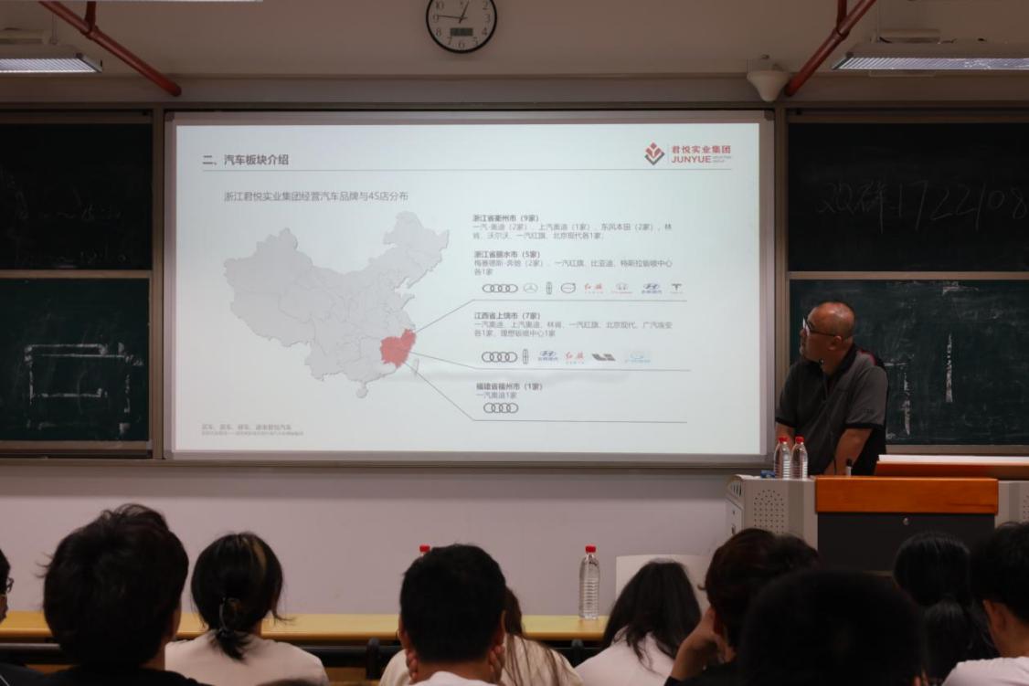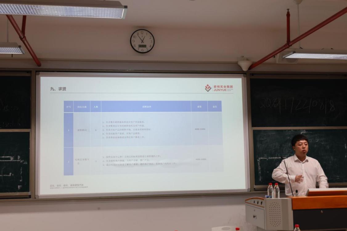 2024年5月7日,福州市君悦佳奥汽车销售有限公司的负责人莅临我校轨道交通学院,针对于轨道交通学院毕业生毕业后的就业问题在实训楼809教室展开了专项宣讲会,拓宽我院毕业生就业渠道,有效的选择优质的就业岗位,进一步推动和提升学生就业质量。