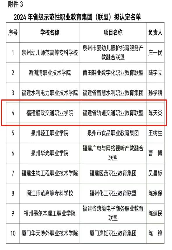 近日,福建省教育厅公布《2024年省级职业教育重点项目拟认定名单》,由我院牵头组建的福建省轨道交通职业教育联盟被认定为2024年省级示范性职业教育联盟。