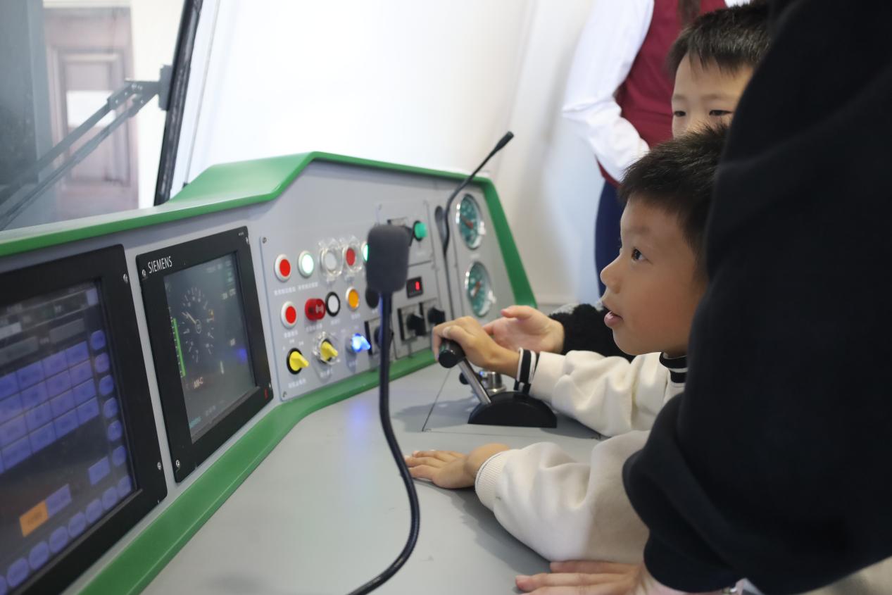 随后,小朋友们参与了科普活动。他们围在展示台旁,对轨道交通模型充满兴趣。这些模型精致而有趣,仿佛将孩子们带入了一个微缩的轨道交通世界。孩子们脸上洋溢着好奇和兴奋,想象着列车在城市中穿梭的场景。在这里,他们不仅能近距离观察模型,还能深入了解轨道交通的原理和运行方式。