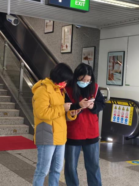 志愿者们帮助不熟悉购票流程的旅客进行购票指引,并为他们规划路线,普及相关的地铁知识。