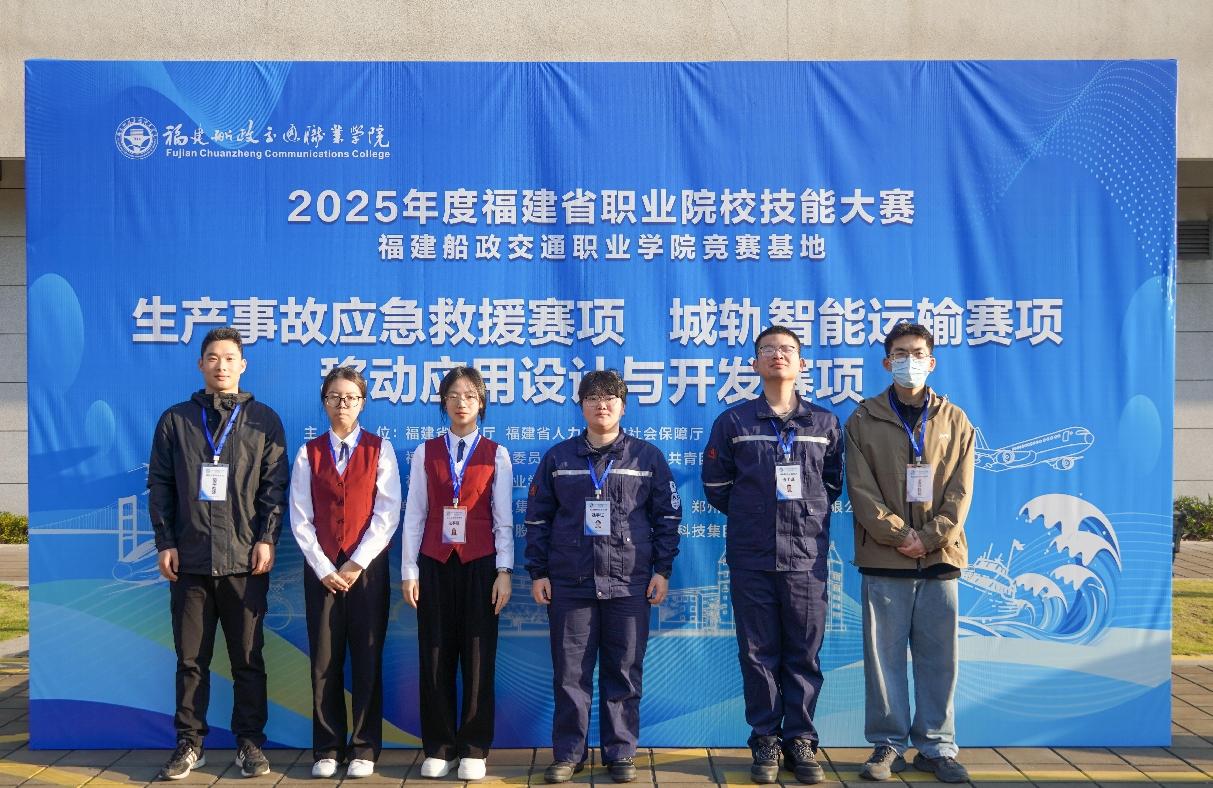 3月22日,由福建省教育厅、福建省人力资源和社会保障厅等八部门联合主办的2025年福建省职业院校技能大赛城轨智能运输赛项在福建船政交通职业学院举行。由我院郑应成老师和赵超超老师指导的代表队(黄雪莹、杨可欣、王佳佳、阮君晟)凭借扎实的专业技能、出色的团队协作,在比赛中脱颖而出,荣获一等奖(第一名),充分展现了船政学子精湛的技能水平和良好的精神风貌。