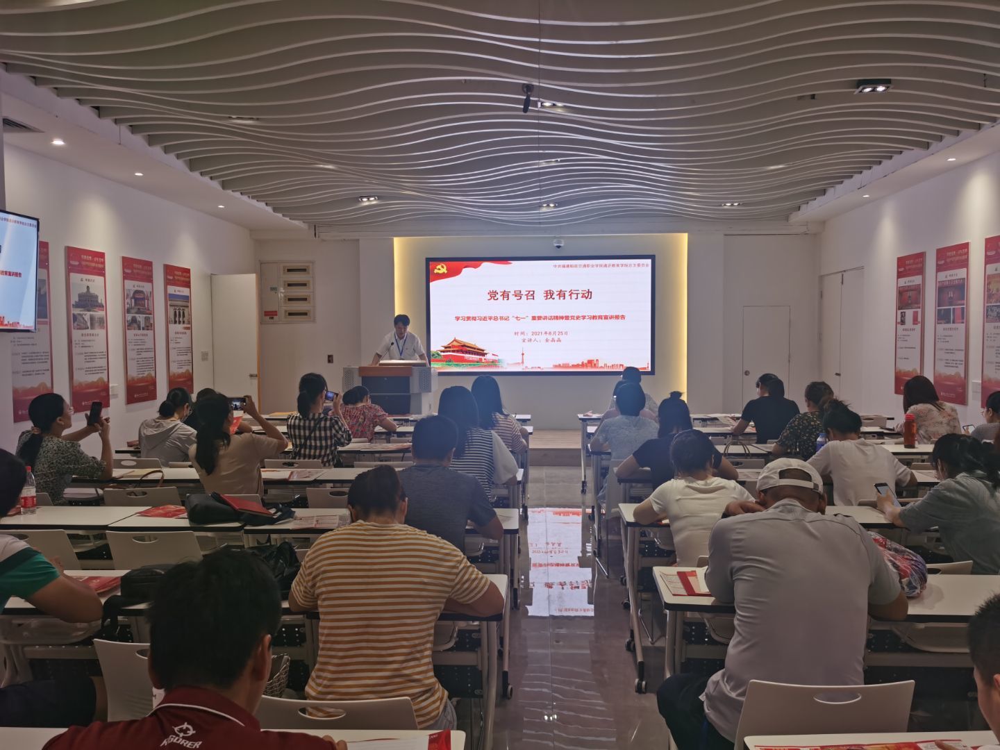 8月25日,通识教育学院党总支在学院党建·思政·船政文化研学中心举办学习贯彻习近平总书记“七一”重要讲话精神暨党史学习教育宣讲报告会,通识教育学院党总支全体党员参加。