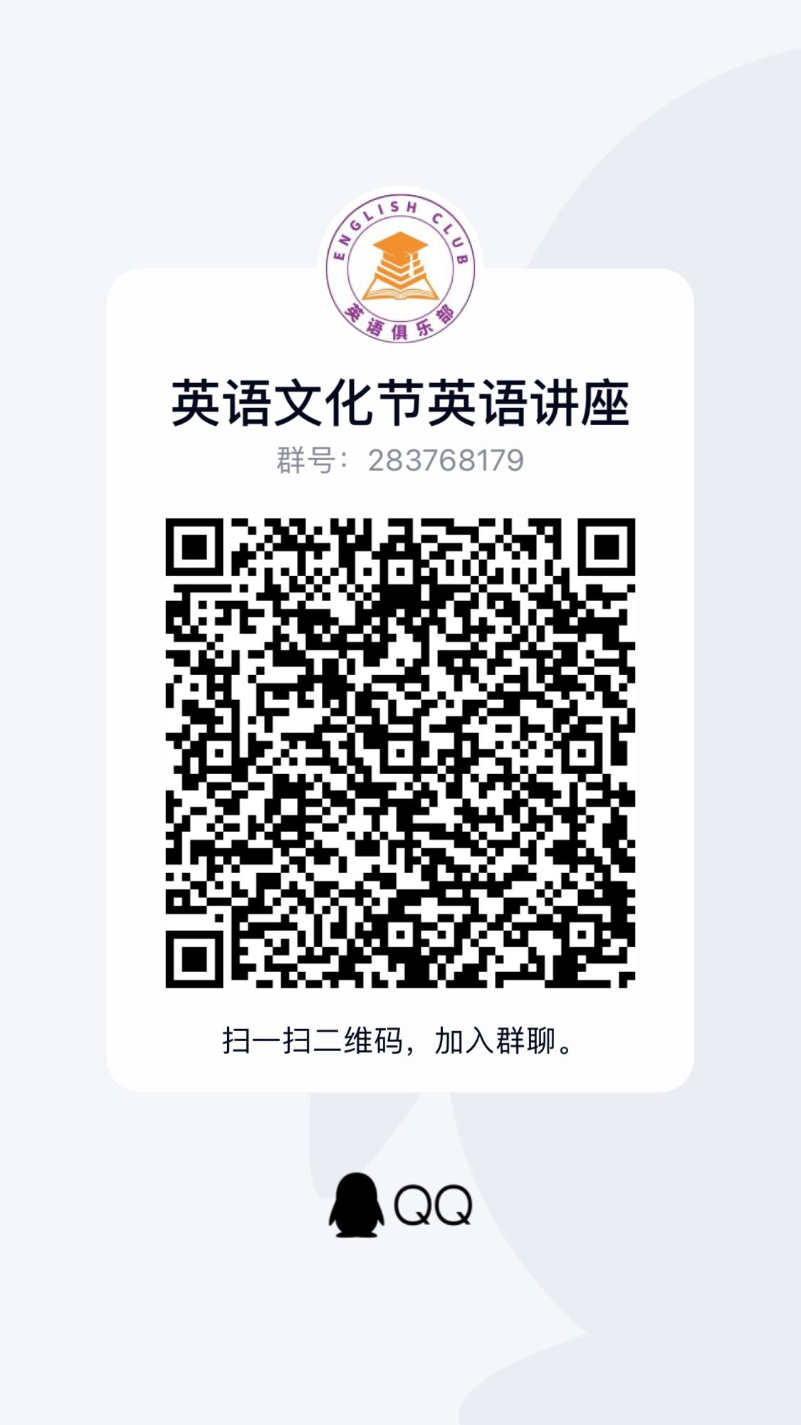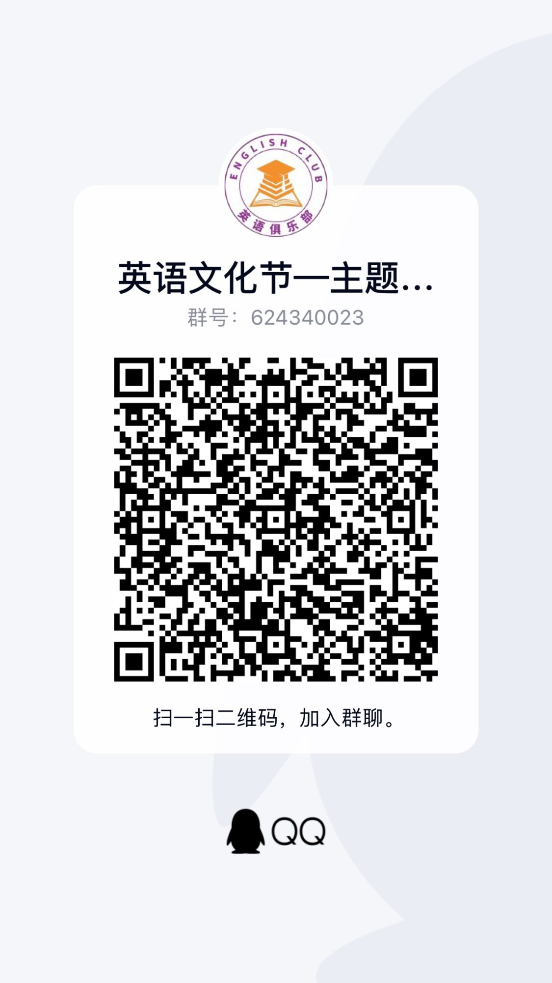 扫码加入Q群并在三全育人平台搜索关键词“英语文化节”找到相应活动进行报名