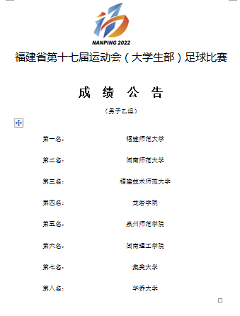 7月14日,福建省第十七届运动会(大学生部)足球比赛(男子乙组)在我校圆满落幕。该组别共有来自全省11支高校代表队(体育专业)参赛。