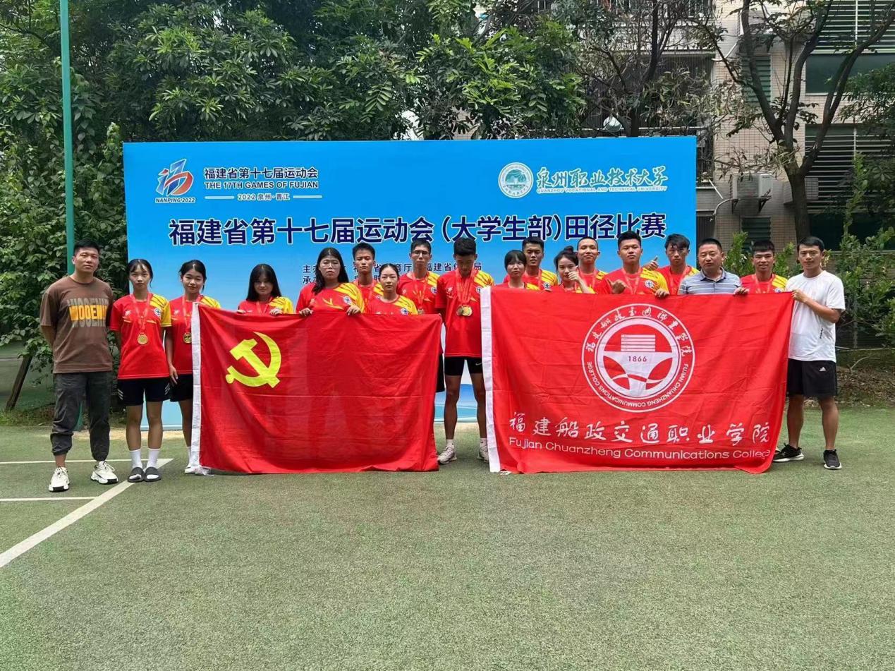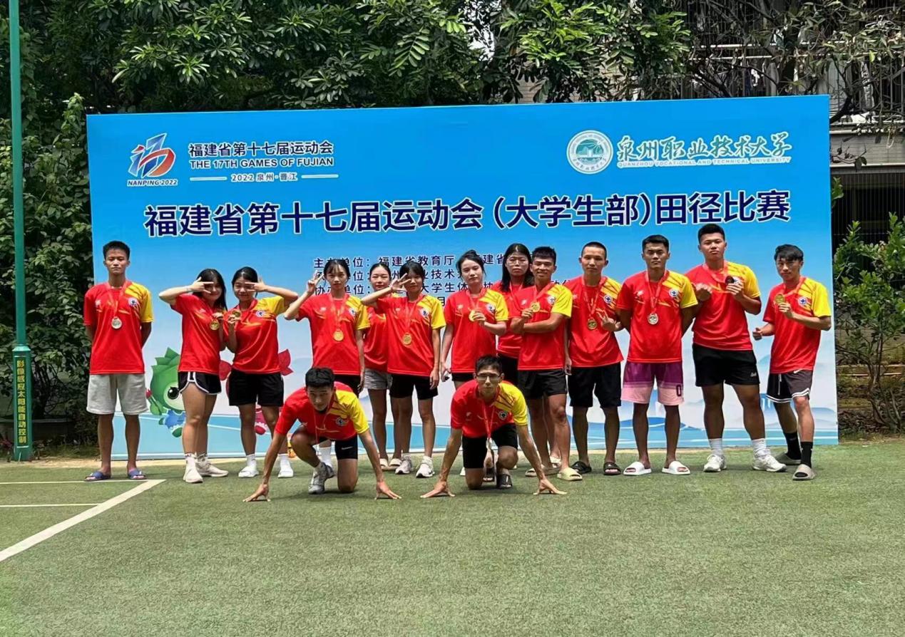 2022年7月31日——8月7日,福建省第十七届运动会(大学生部)田径比赛在泉州职业技术大学顺利举办。此次比赛由福建省教育厅、福建省体育局主办,共吸引来自省内80多所高校的1500多位运动健儿参赛。经过激烈角逐,我院田径队分别在丙组男子100米、200米、跳高、跳远、800米、铁饼、1500米和5000米,女子100米、铅球、铁饼等项目斩金夺银,以10金3银3铜,改写5项赛会记录,以222分的优异成绩荣获丙组团体总分第一。
