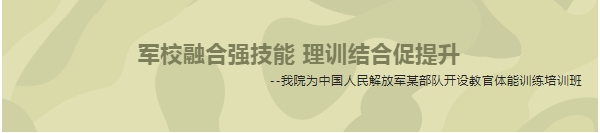 近年来,我院主动与校外各单位加强沟通,加大宣传力度,不断扩大体育课程服务品牌影响力。本次培训班的成功举办,是我院与中国人民解放军前期合作的进一步深化,是我院助力军民融合共建工作的又一丰硕成果,同时进一步丰富了我校体育工作内涵。