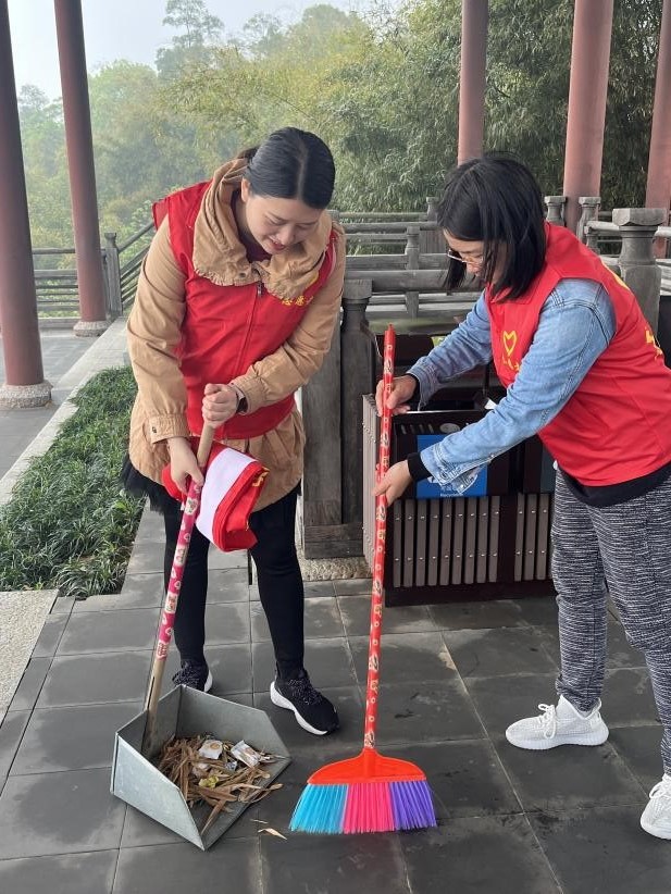 组织支部党员带头深入高盖山公园参加义务劳动,捡拾公园垃圾、打扫卫生,净化公园环境。