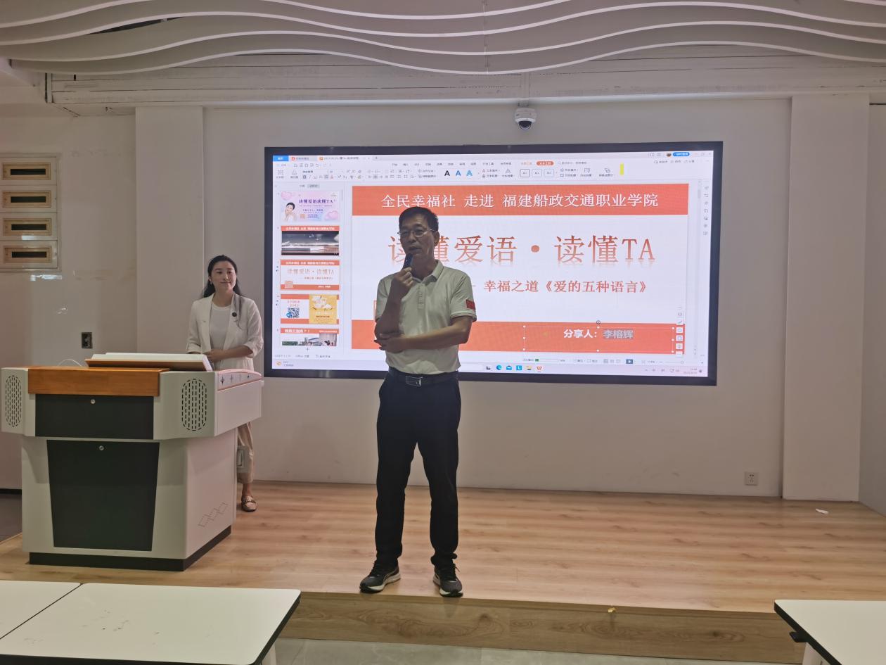 2023年9月20日下午,我院邀请全民幸福社福州院院长李榕辉老师做以题为《读懂爱语读懂TA》的培训。李榕辉老师是心启动家庭文化主理人、国家三级心理咨询师,国家三级人力资源管理师、家庭治疗暨亲子教育指导师、闽清县心理咨询师协会负责人。我院全体教职工和宁夏职业技术学院侯宗丽老师参加培训,培训课由我院方儒钦院长主持。